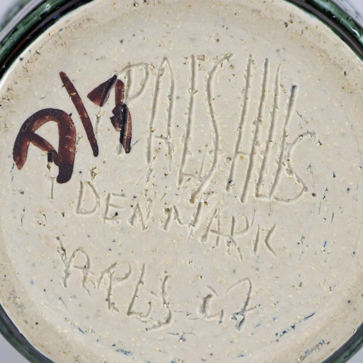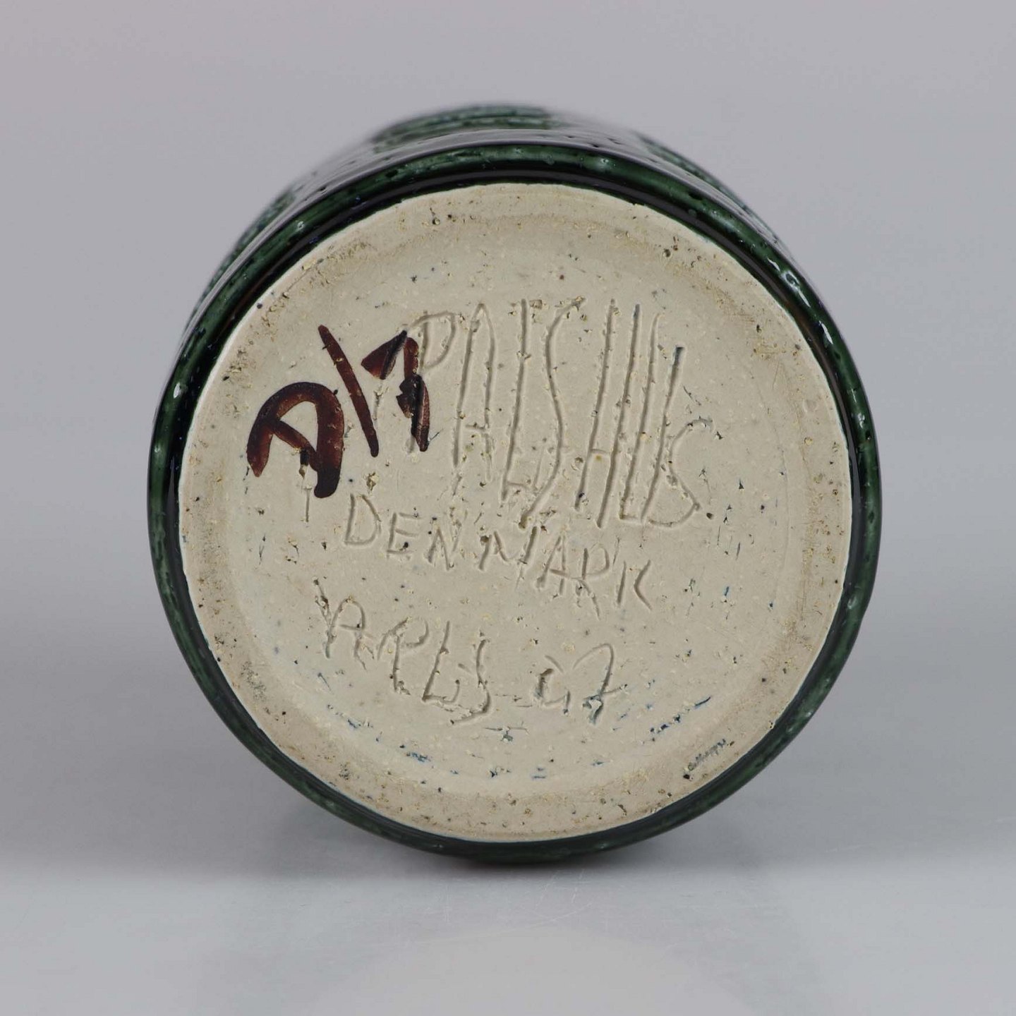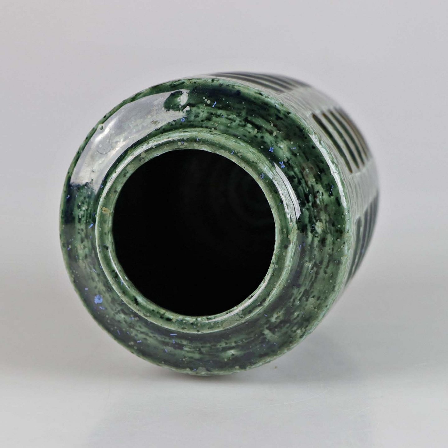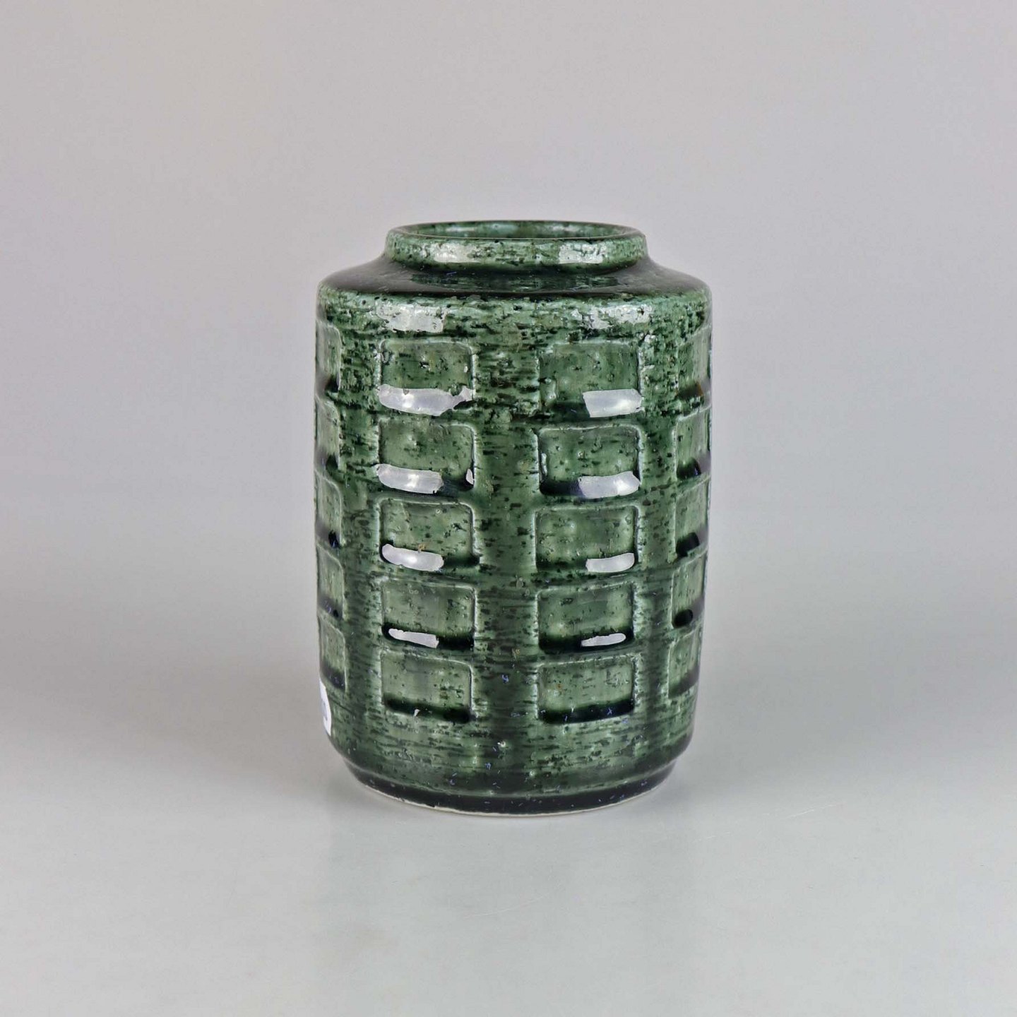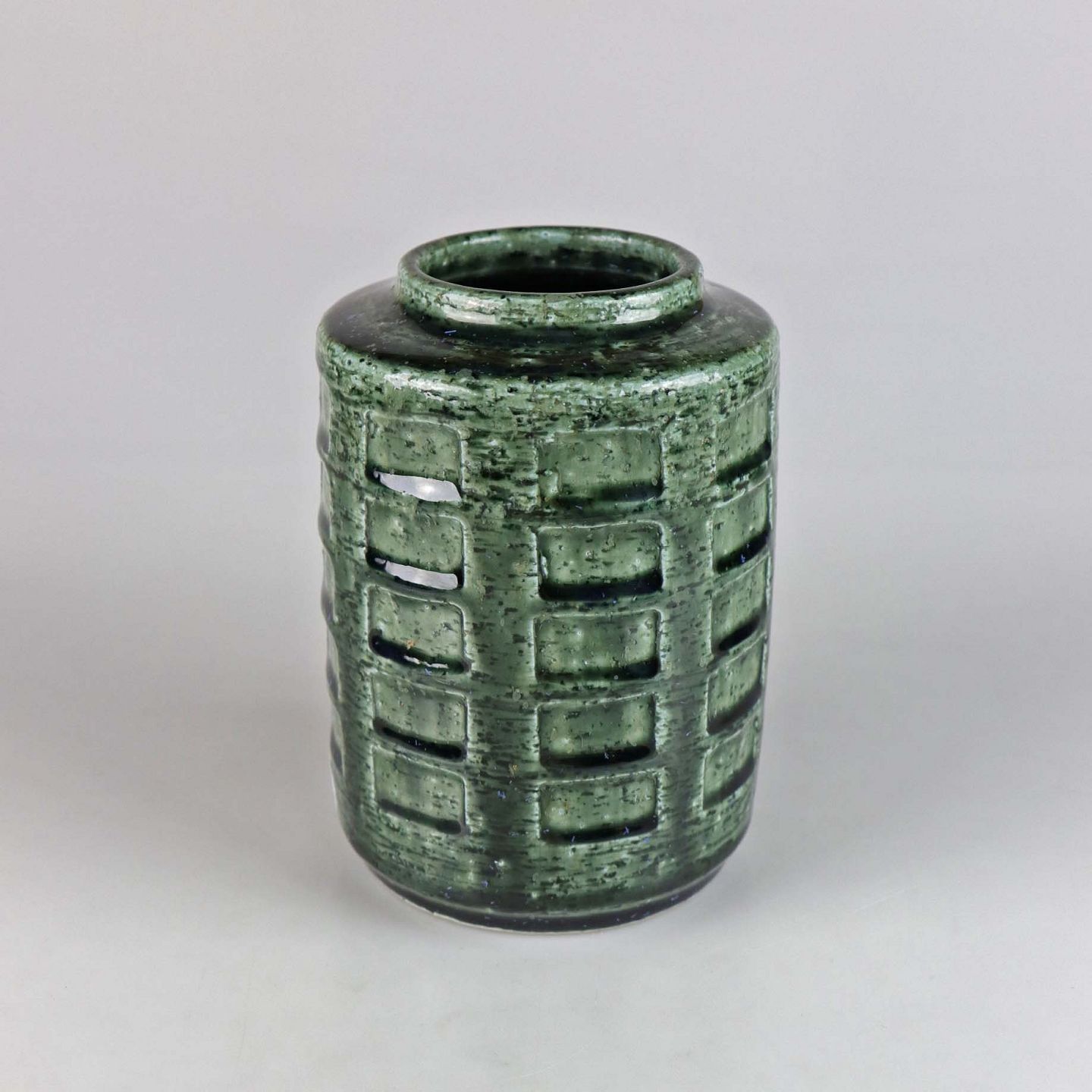 Cylinderformet vase af stentøj med grønlig glasurDesign Per Linnemann-Schmidt