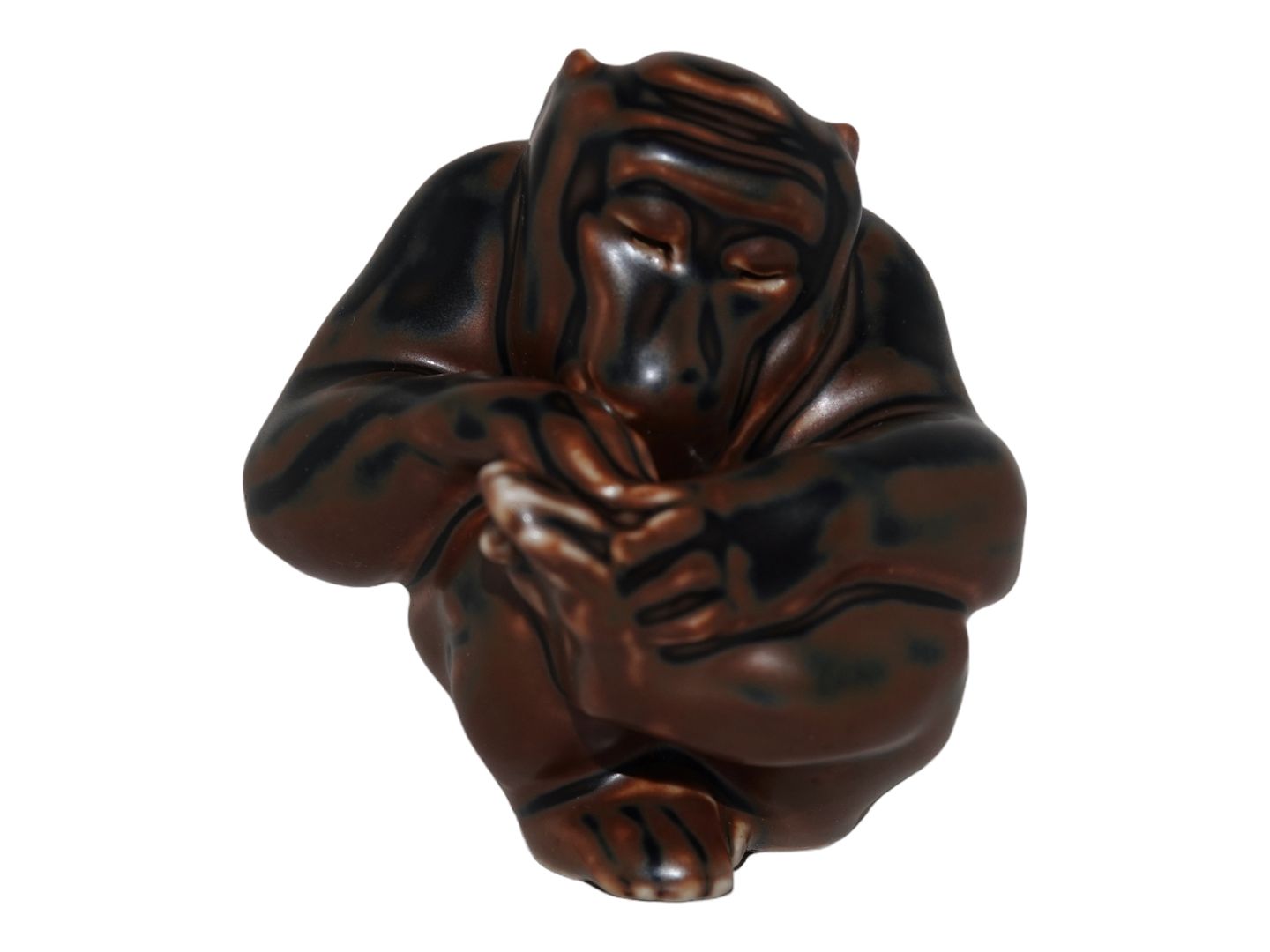 Lille Royal Copenhagen stentøjsfigur, abe.Designet af Knud Kyhn.
