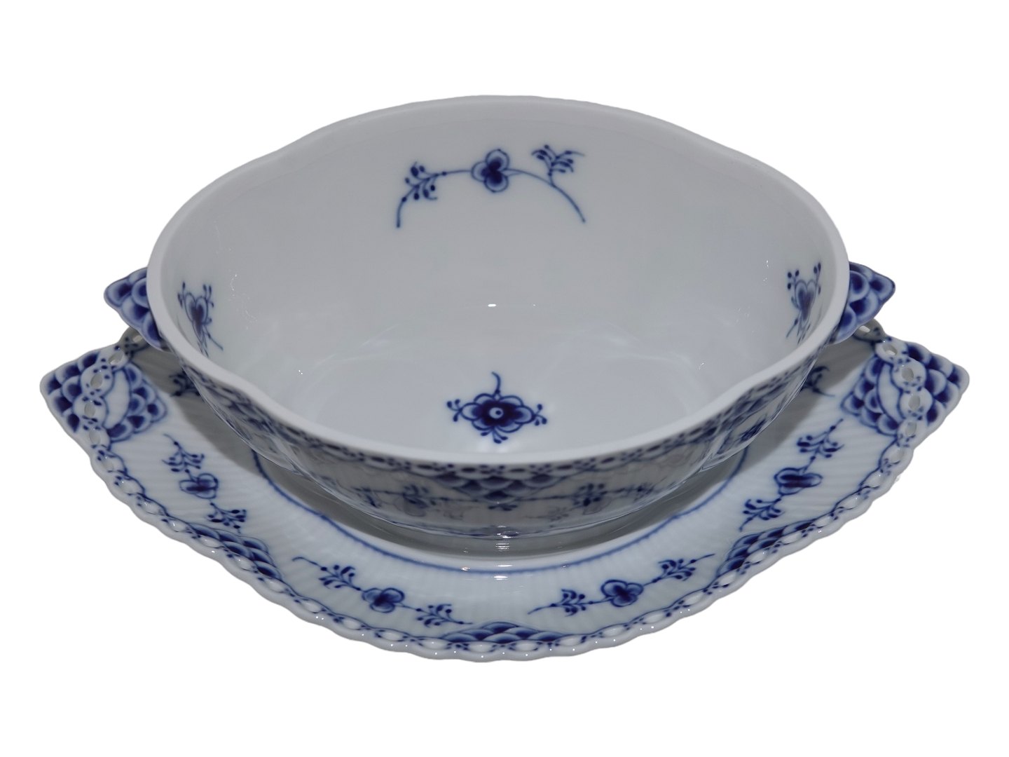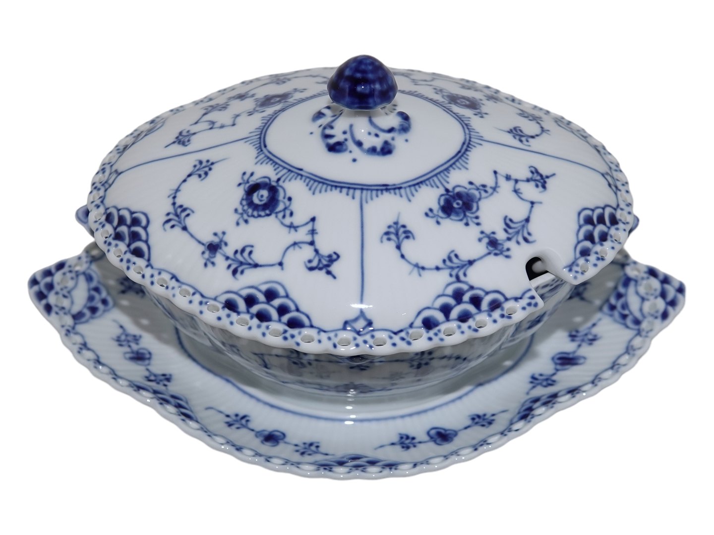 Royal Copenhagen Musselmalet Helblonde, sovseterrin (soveskål med låg).Dekorationsnummer 1/1106.
