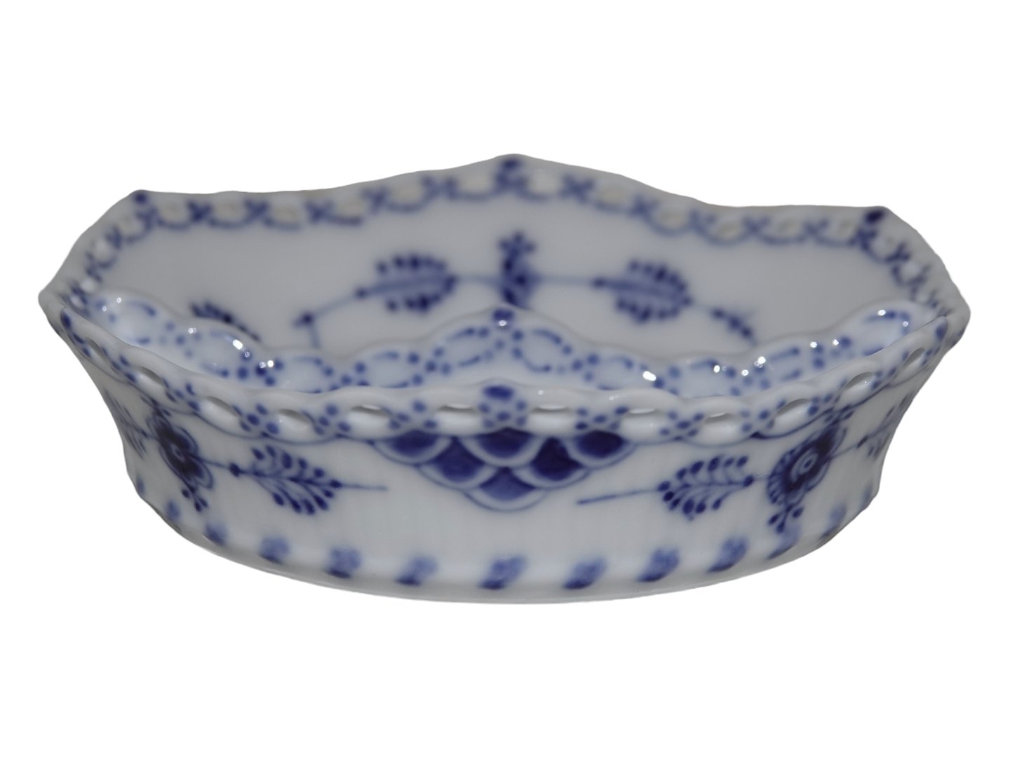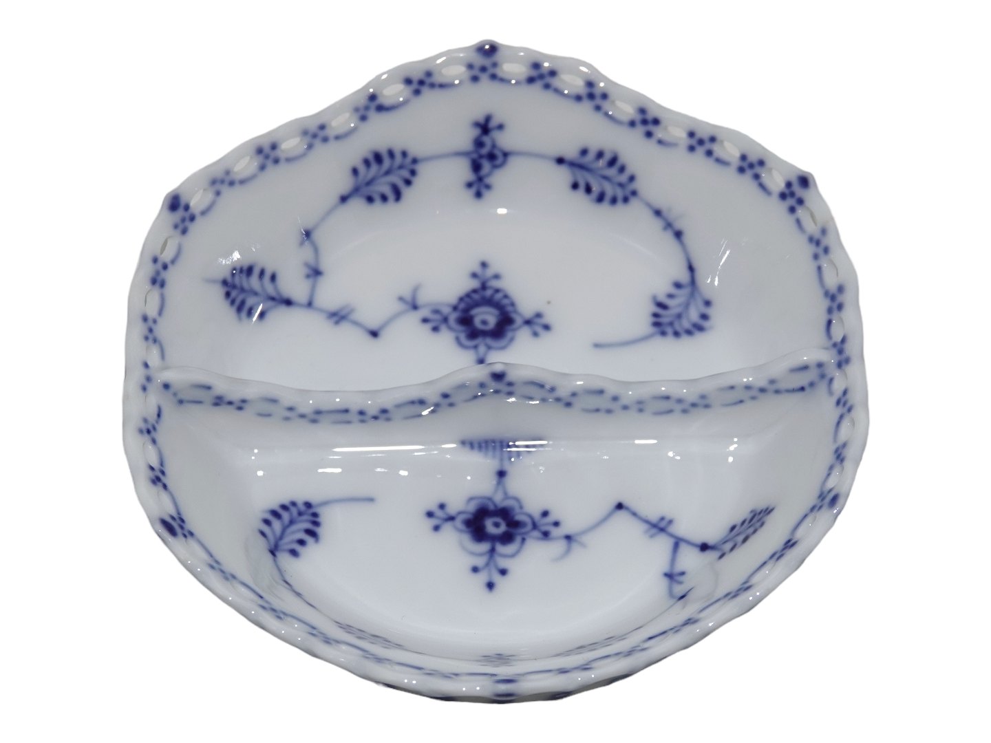 Royal Copenhagen Musselmalet Helblonde, lille to-delt skål / asiet.Fabriksmærket viser, at denne er produceret i mellem 1928 og 1935.