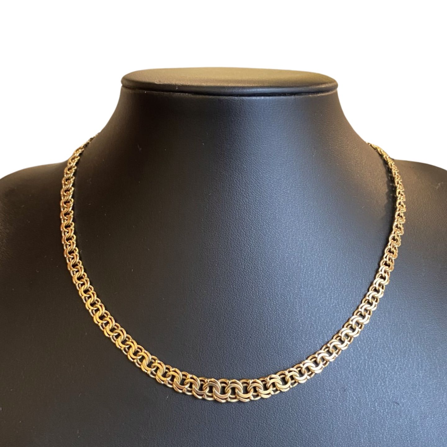 Bismarck halskæde af 14 kt. guld. Monteret med kasselås samt to sikkerhedslåse.