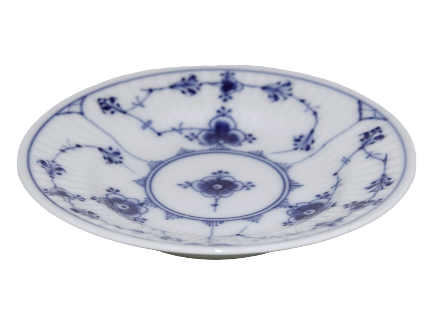 Royal Copenhagen Musselmalet Riflet, lille fad til at stille et æggebæger på.Dekorationsnummer 1/116.