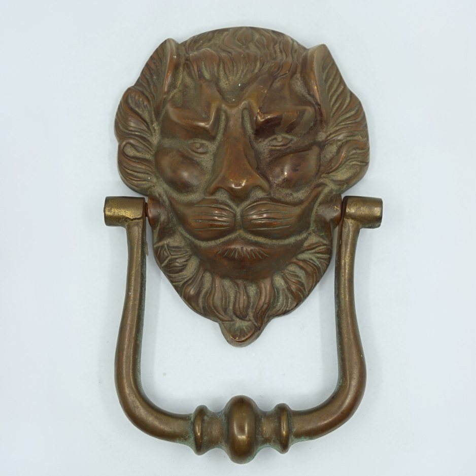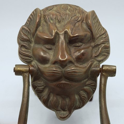 Dørhammer i patineret bronze i form af løvehoved.Frankrig første halvdel af 1900-tallet.