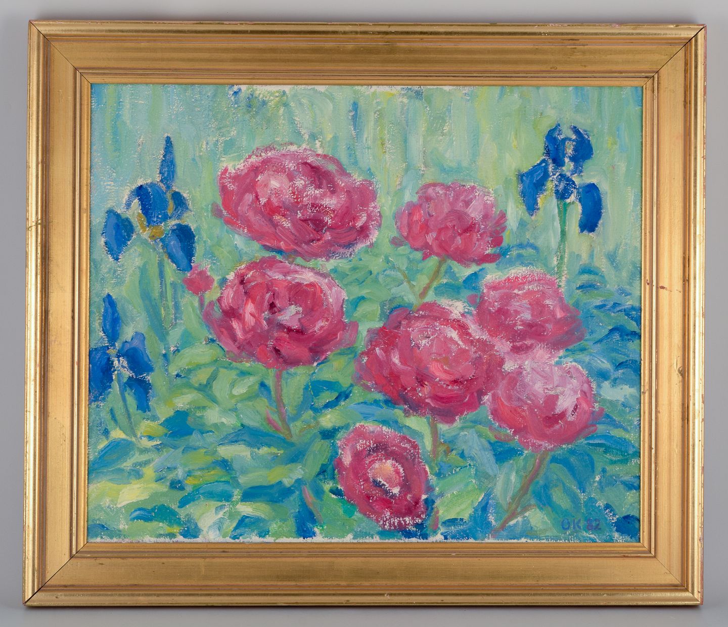 Ole Kielberg (1911-1985), dansk maler.Olie på lærred. Blomsteropstilling.