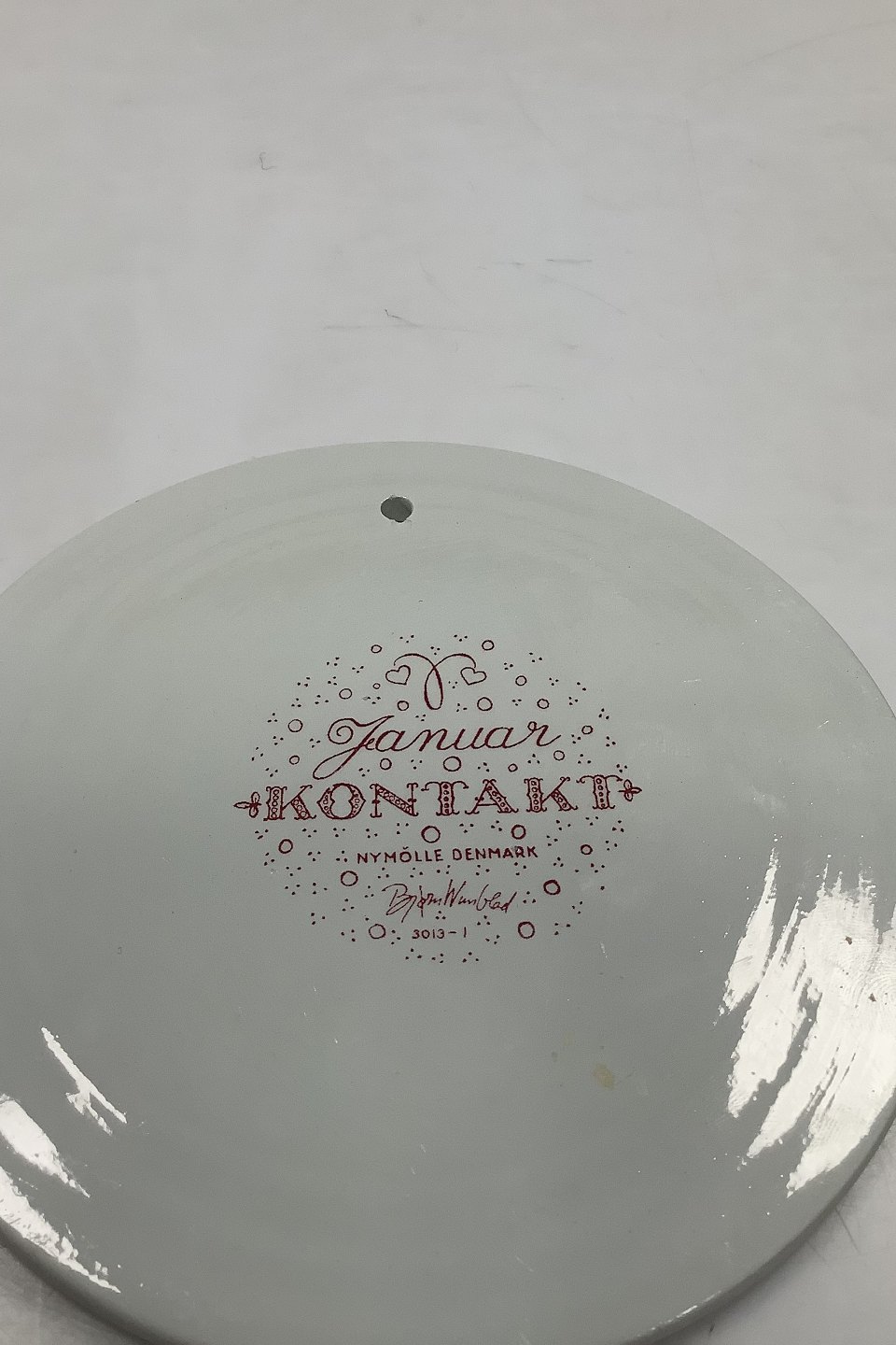 Rød månedsplatte i fajance for Januar - KONTAKT. Designet af Bjørn Wiinblad for Nymølle. I god stand. Fabriksmærket på bagsiden. Mål: 15 cm (5.90 inch.)Lager: 1