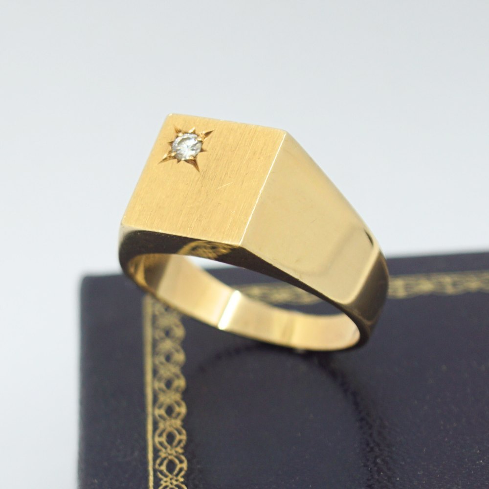 Povl Christensen; Stor herre signetring i 14 kt. guld med diamant. Matteret og glat overflade.Ring str. 73. 13,2 gram.