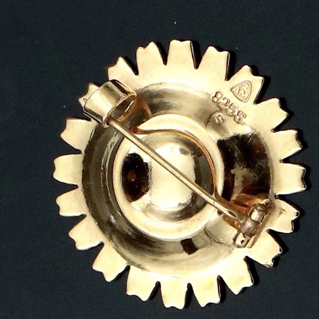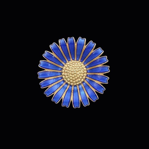 A. Michelsen Marguerit / Daisy Broche i forgyldt sterling sølv med blå emalje - 33mm.