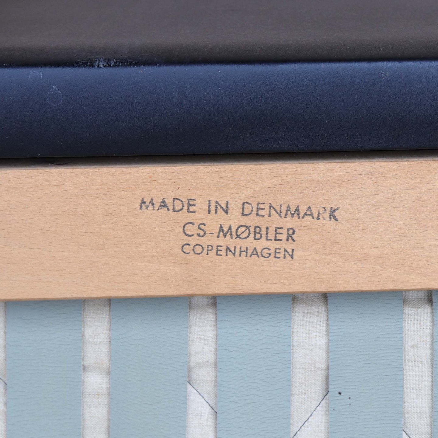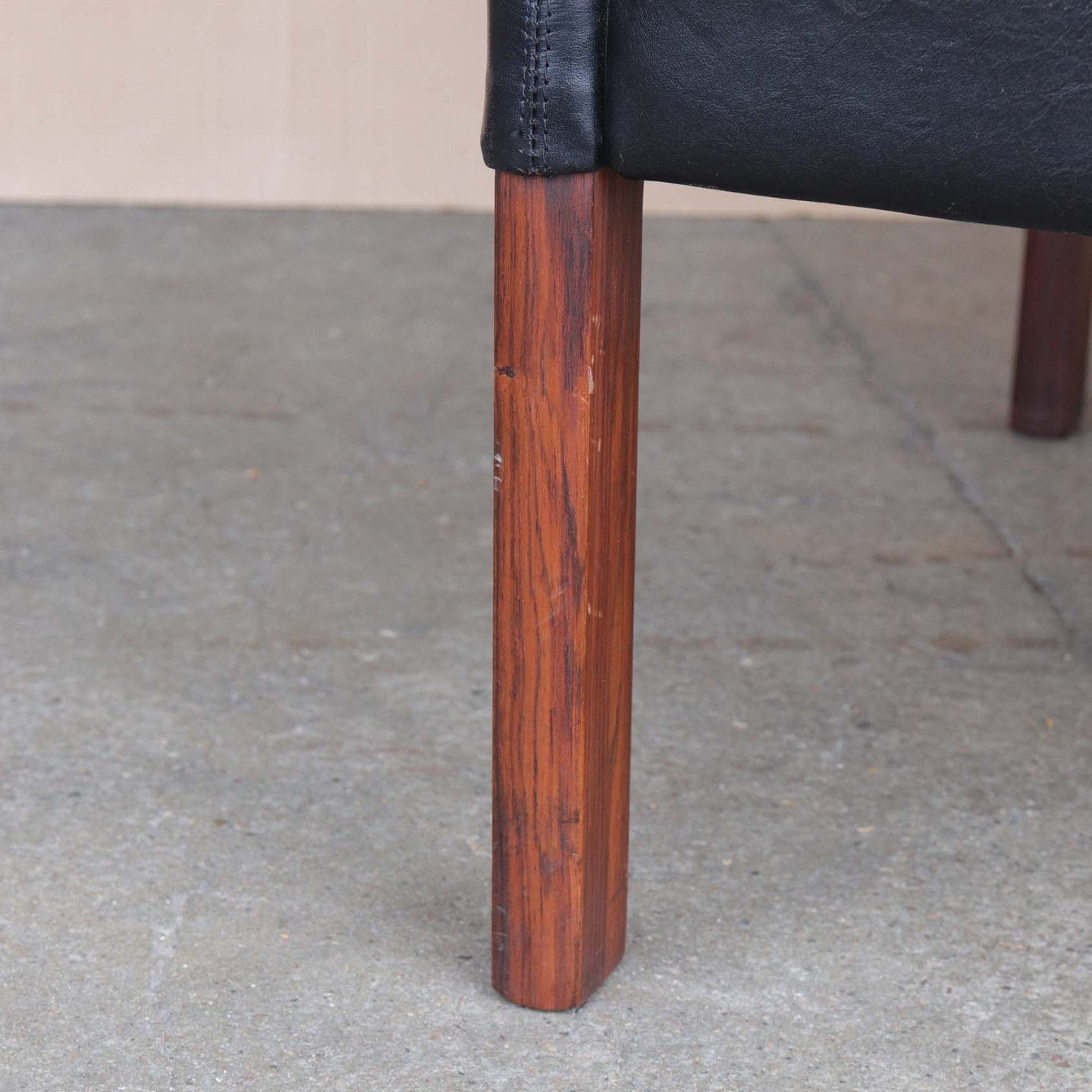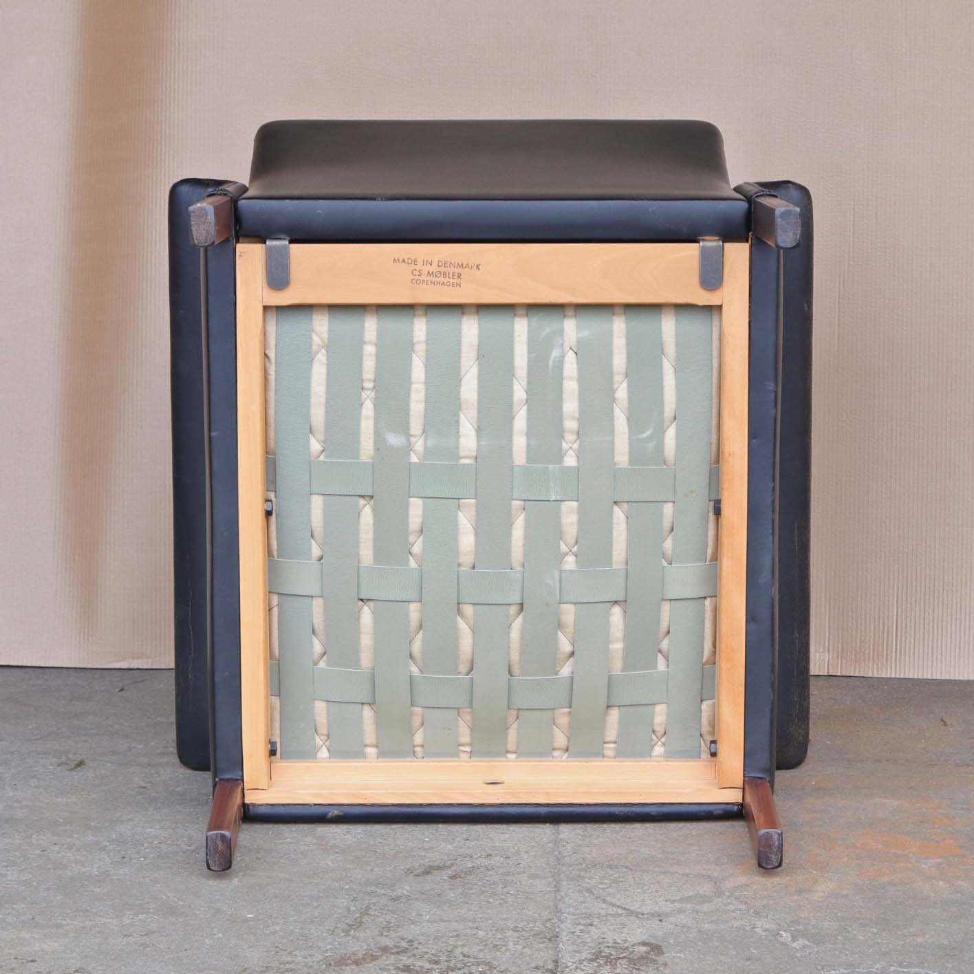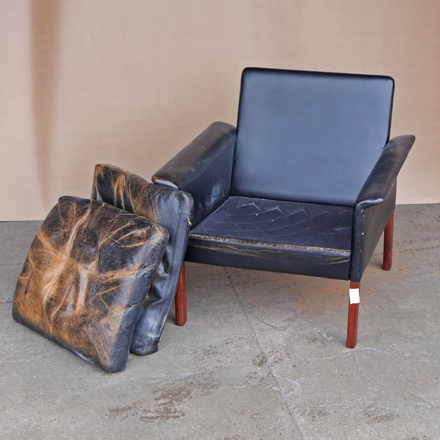 Lænestol med stel i lakeret palisander. Stolen betrukket med sort patineret læder Design Hans Olsen