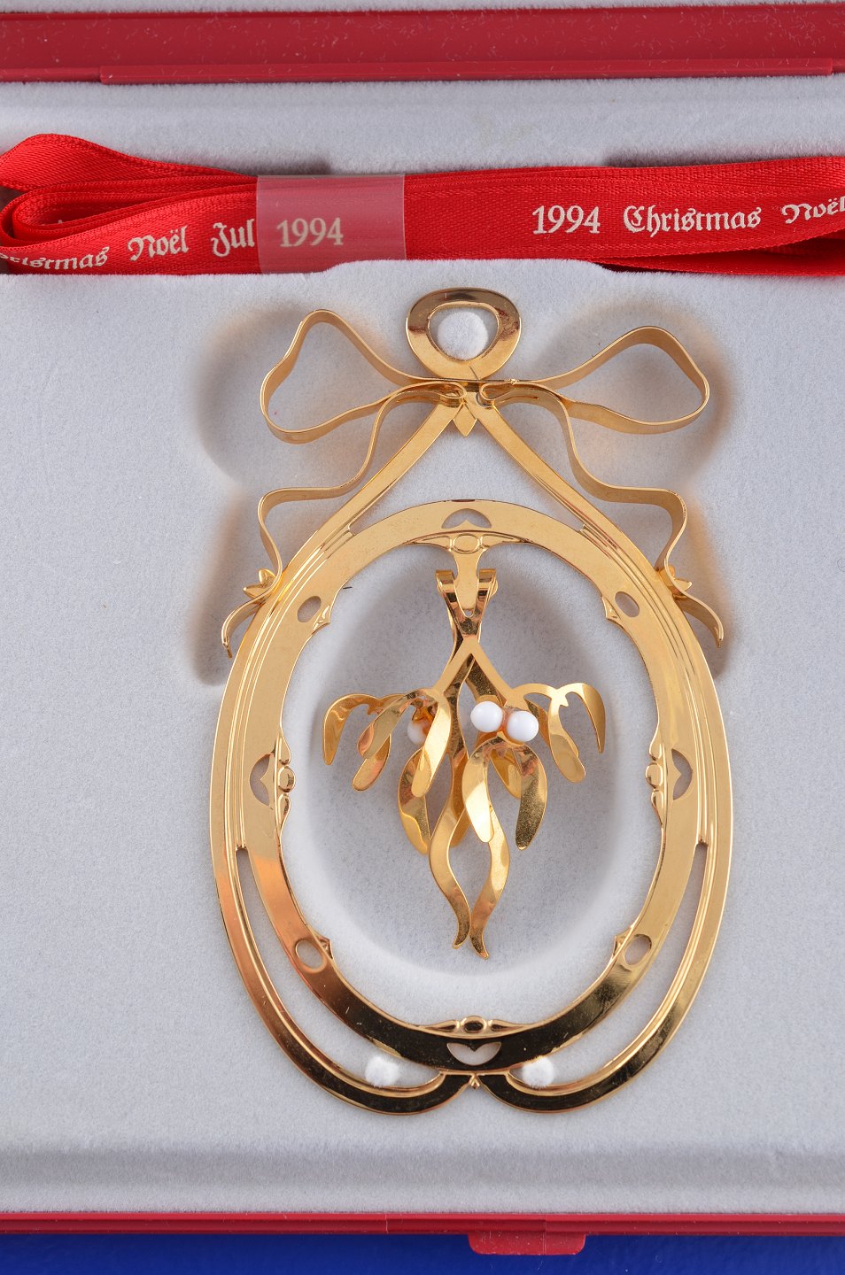 Georg Jensen Weihnachtsmobile 1994, Mistelzweig vergoldet messing. Design : Jette Frölicb. Tadelloser Zustand, mit Box.