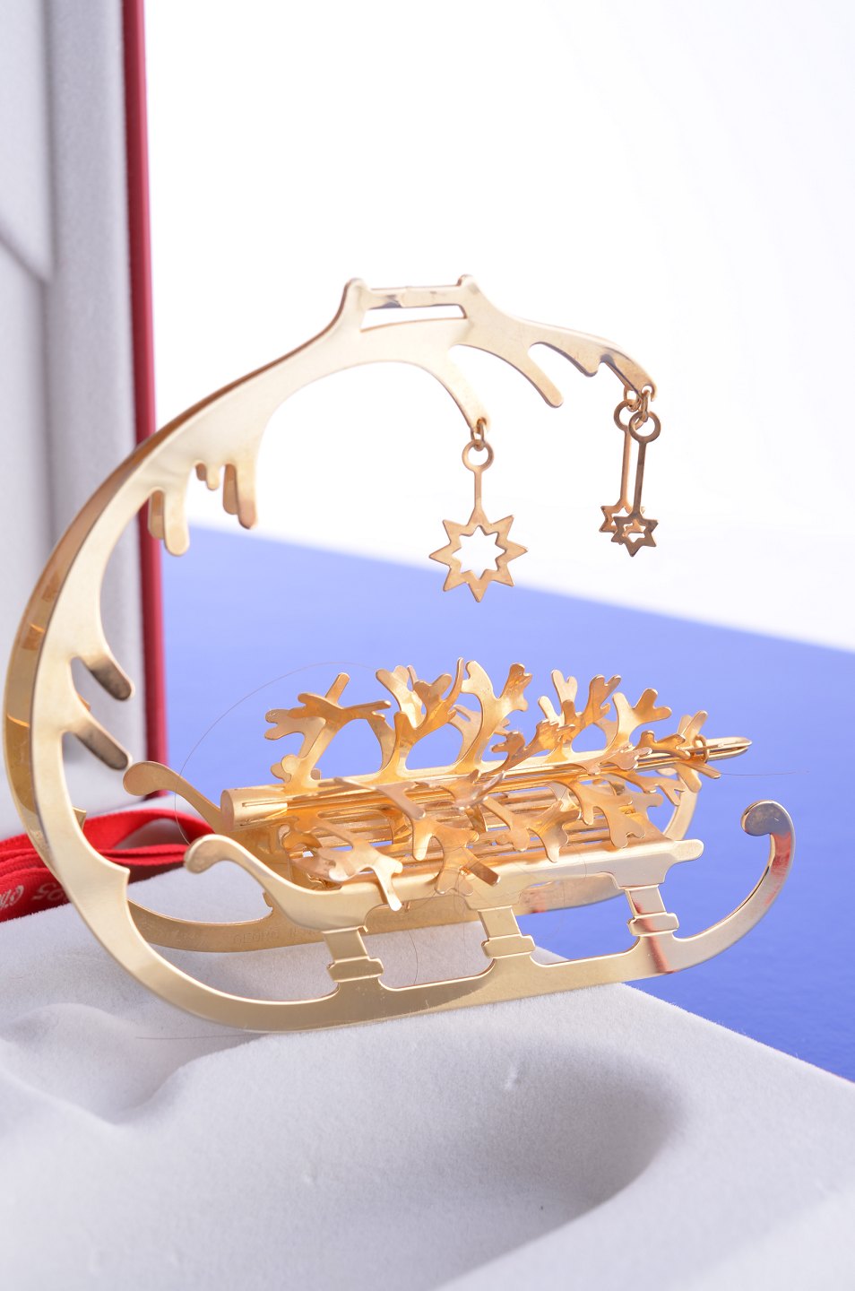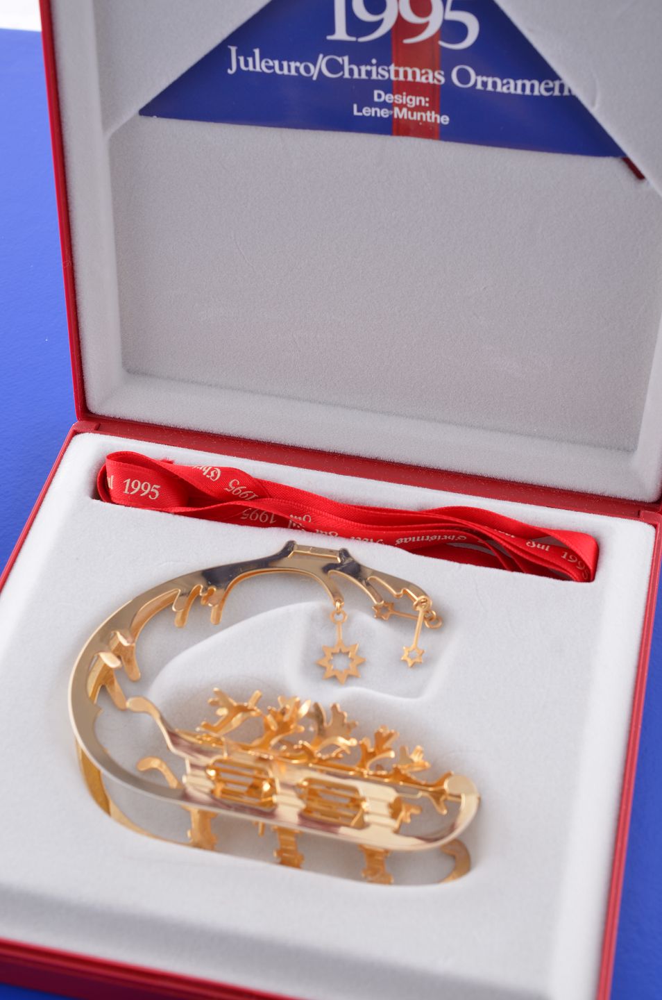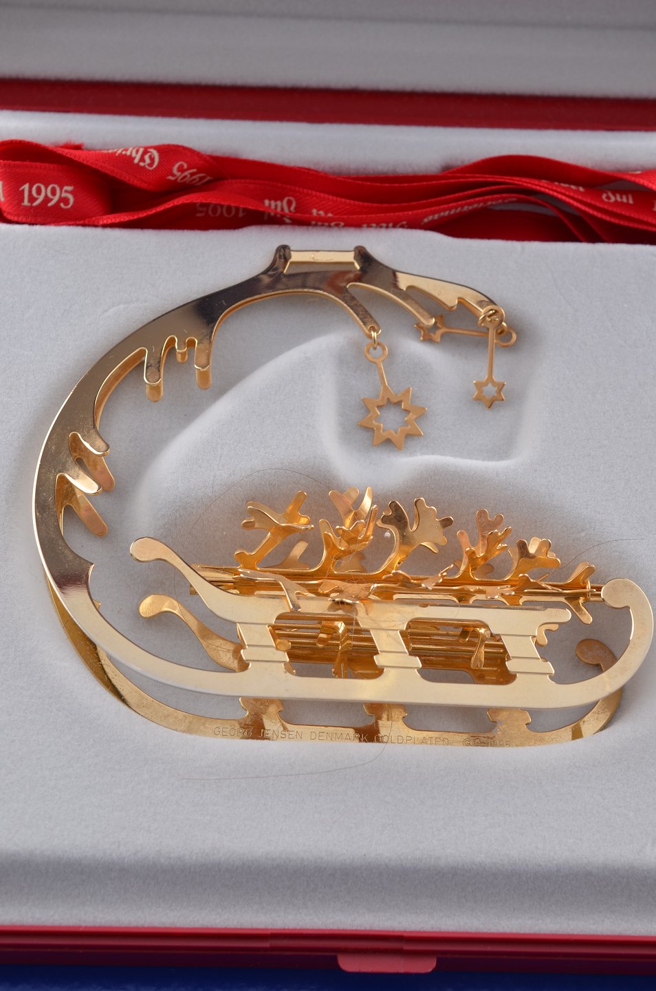 Georg Jensen Weihnachtsmobile 1995 Weihnachtsschlitten, vergoldet messing. Design : Lene Muntbe. Tadelloser Zustand, mit Box. Händler