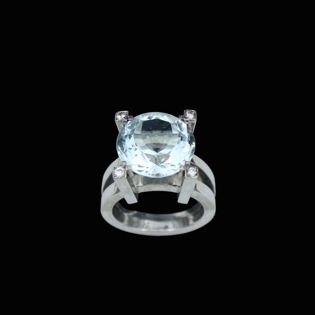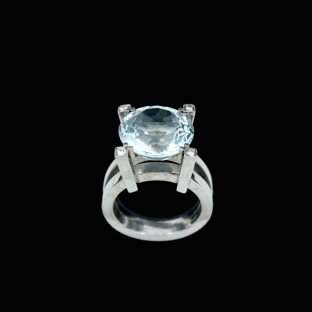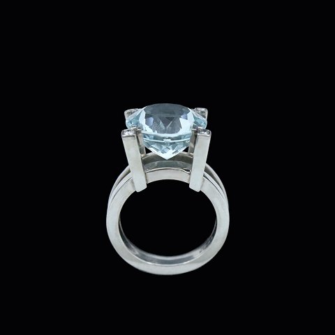 Vilhelm Holmstrup. Ring i 14k hvidguld med aquamarine og diamanter.