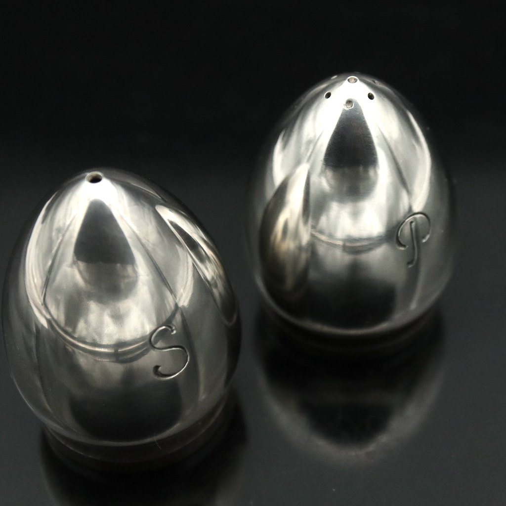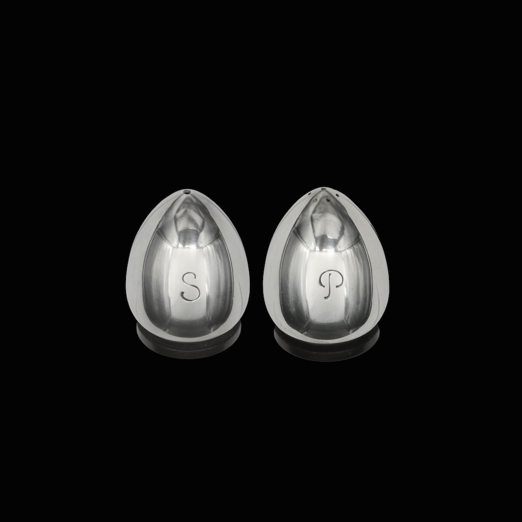 Evald Nielsen (1879-1958). Art deco salt- og peberbøsse i sterlingsølv.