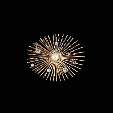 Viggo Wollny. Broche i 14k Guld med brillanter.