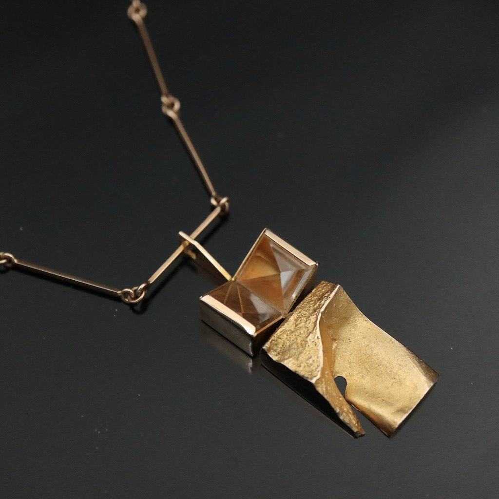 Lapponia. 'Narcissos' Halskæde i 14k guld med bjergkrystal - Björn Weckström 1969.