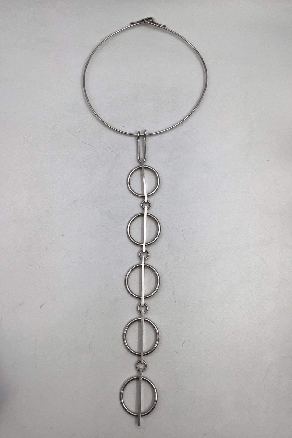 Hans Hansen Sterling Sølv Halssmykke Måler Halsring Diam 12 cm (4.72 inch) Vedhæng 26 cm (10.23 inch) Vægt 70.64 gr (2.49 oz)Lager: 0
