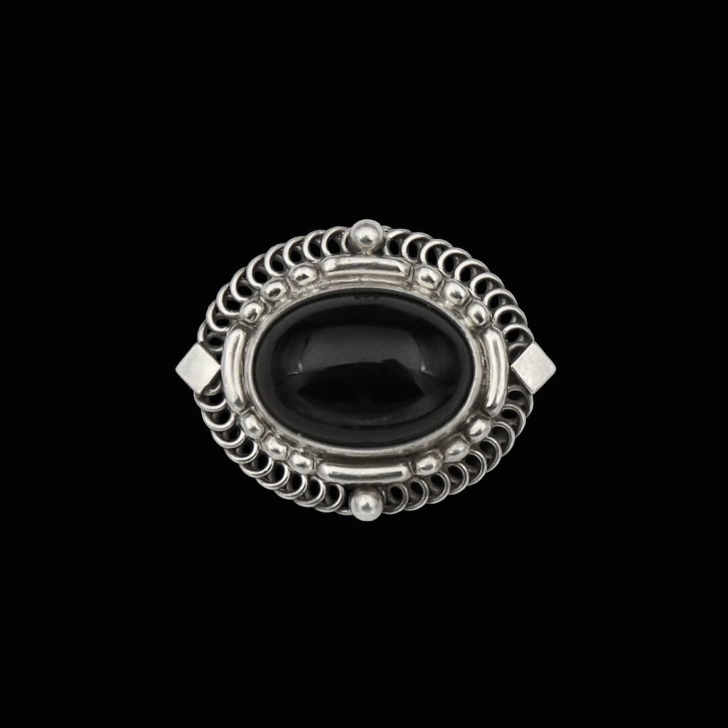 Georg Jensen. Broche i sterling sølv med onyx #419.