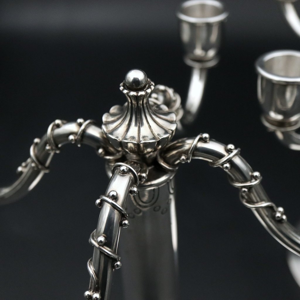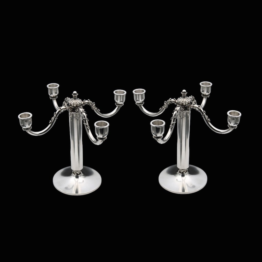 Peter Hertz. Et par art deco fire-armet kandelabra i sølv - 1931.