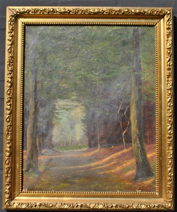 Dänischer Künstler (19. Jahrhundert): Wald. Öl auf Leinwand. Ohne Unterschrift. Höhe: 67 cm. B: 53 cm.Gerahmt: H: 79 cm. B: 66 cm.