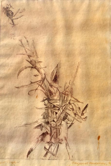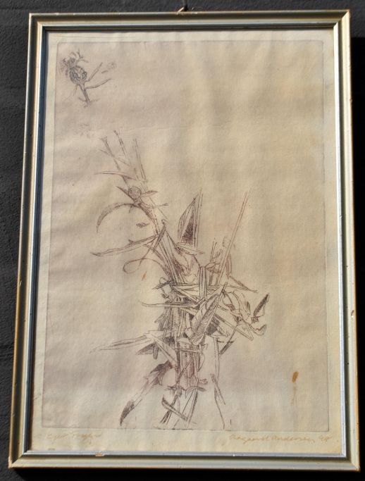 Aagaard Andersen, Gunnar (1919 - 1982): Eine Pflanze. Radierung. Eigener Druck. Unterzeichnet. 29 x 21 cm.Gerahmt mit Silberrahmen: 35 x 25 cm.