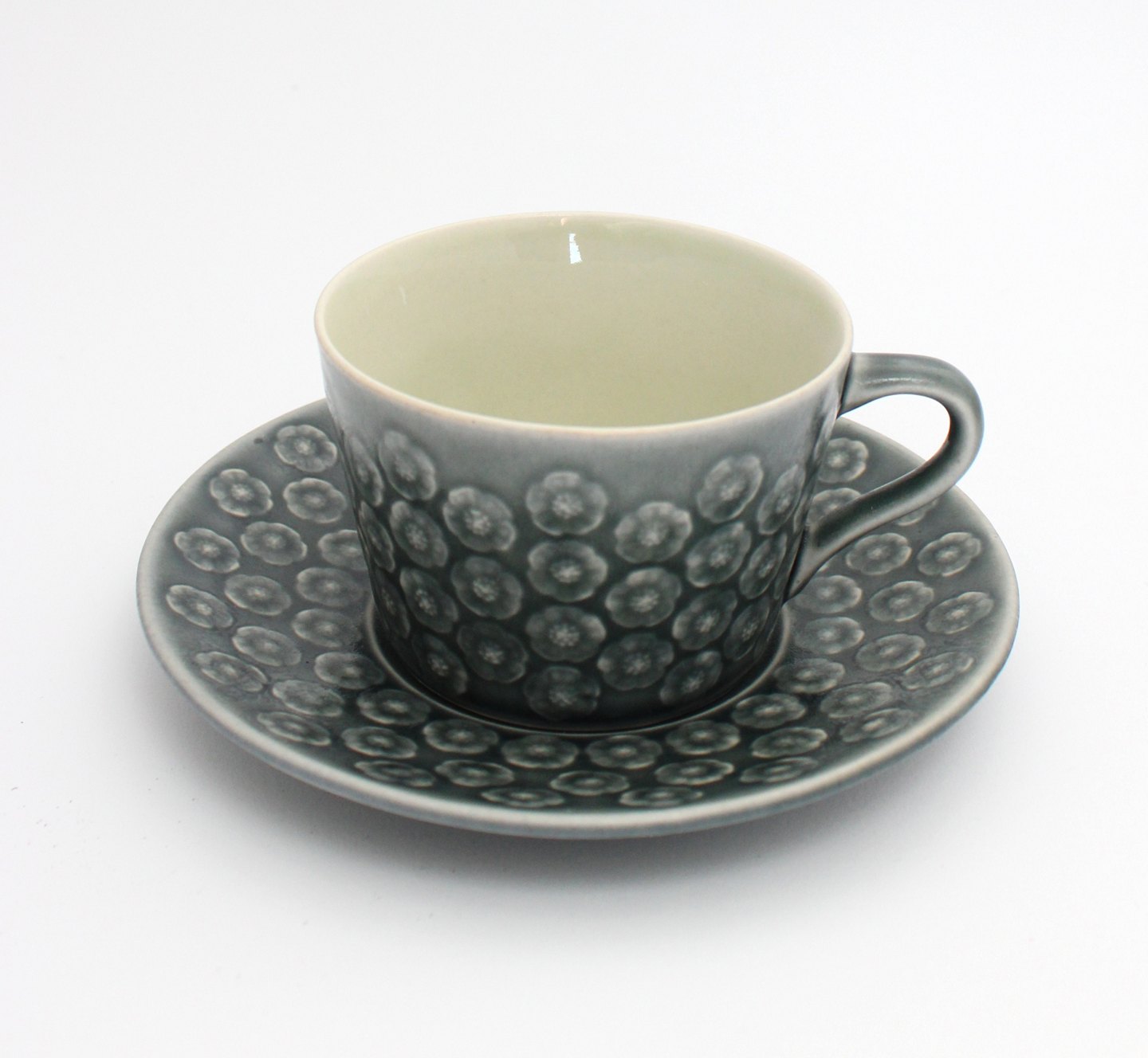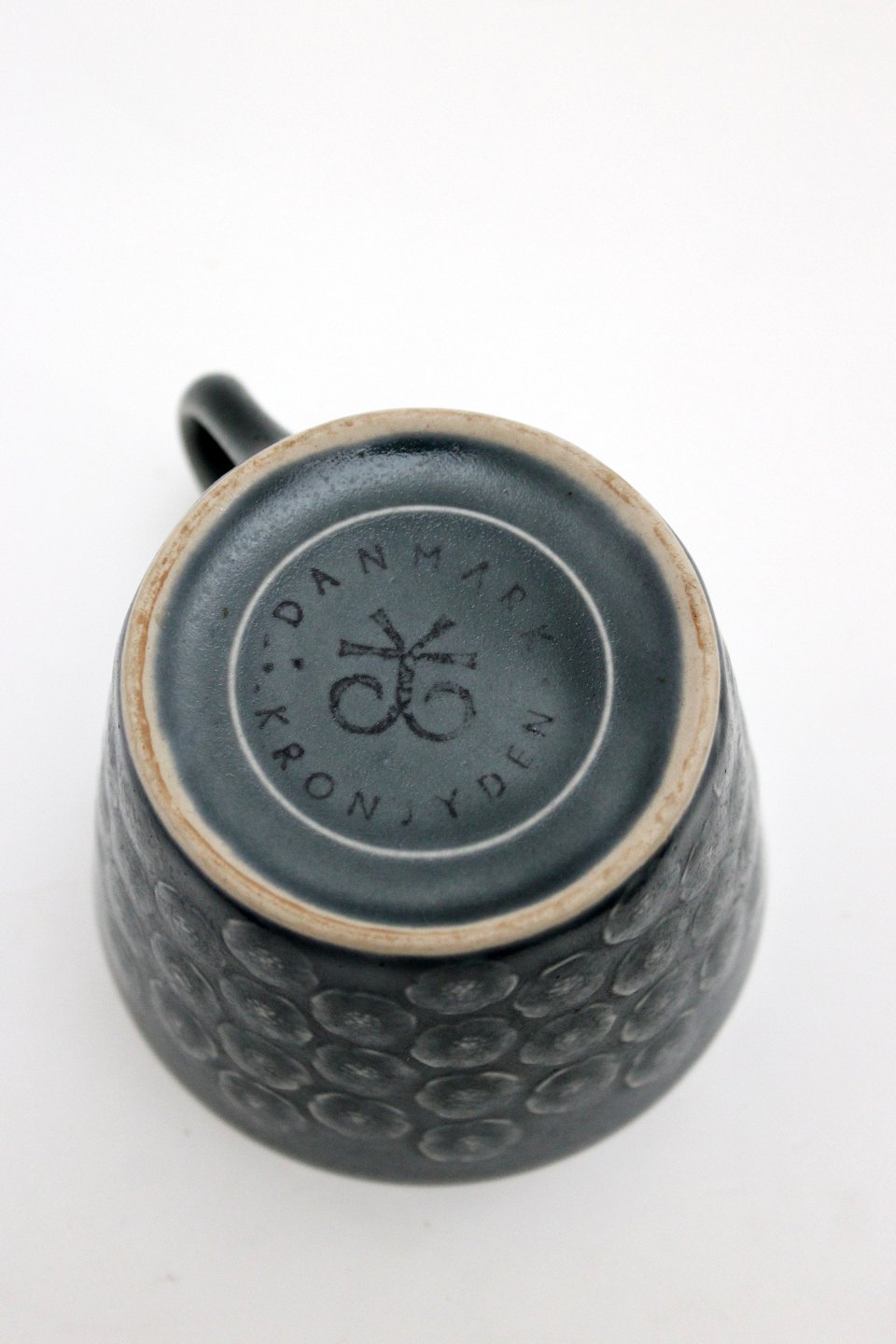Kronjyden, Azur. Designet af Jens Harald Quistgaard i 1950'erne. Tekop med underkop. Højde 6 cm. Diameter 8,5 cm. Underkop 15 cm. Flot stand. Pris: 475 kr. stk. Lager: 6
