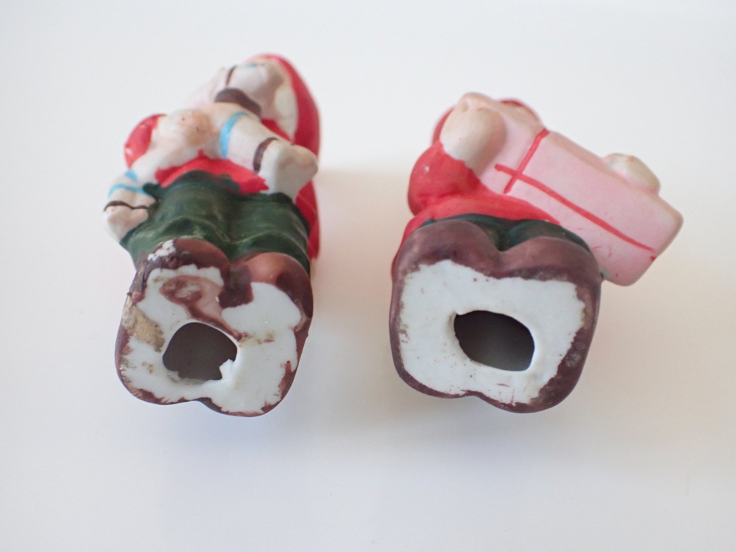 2 håndmalede biscuitnisser, formentlig tyske. En holder en julebuk og en holder en pakke. Fra 1950-erne. Højde: 8 - 9 cm. I fin stand. Sælges individuelt for 275 kr. pr. stk. Händler