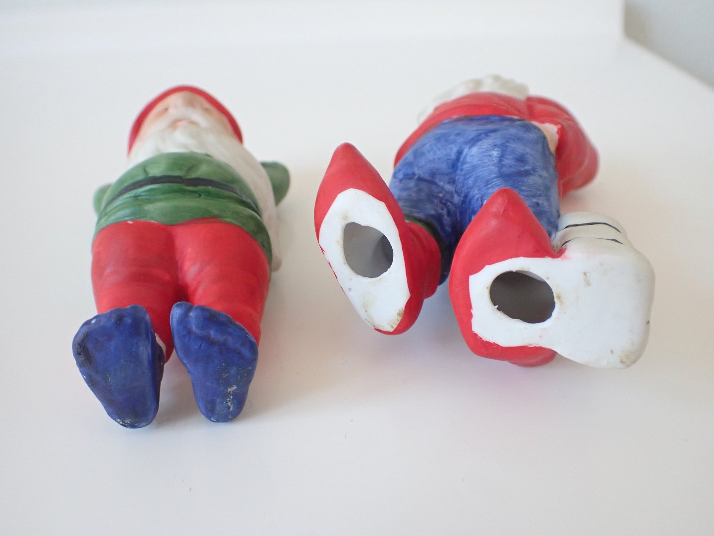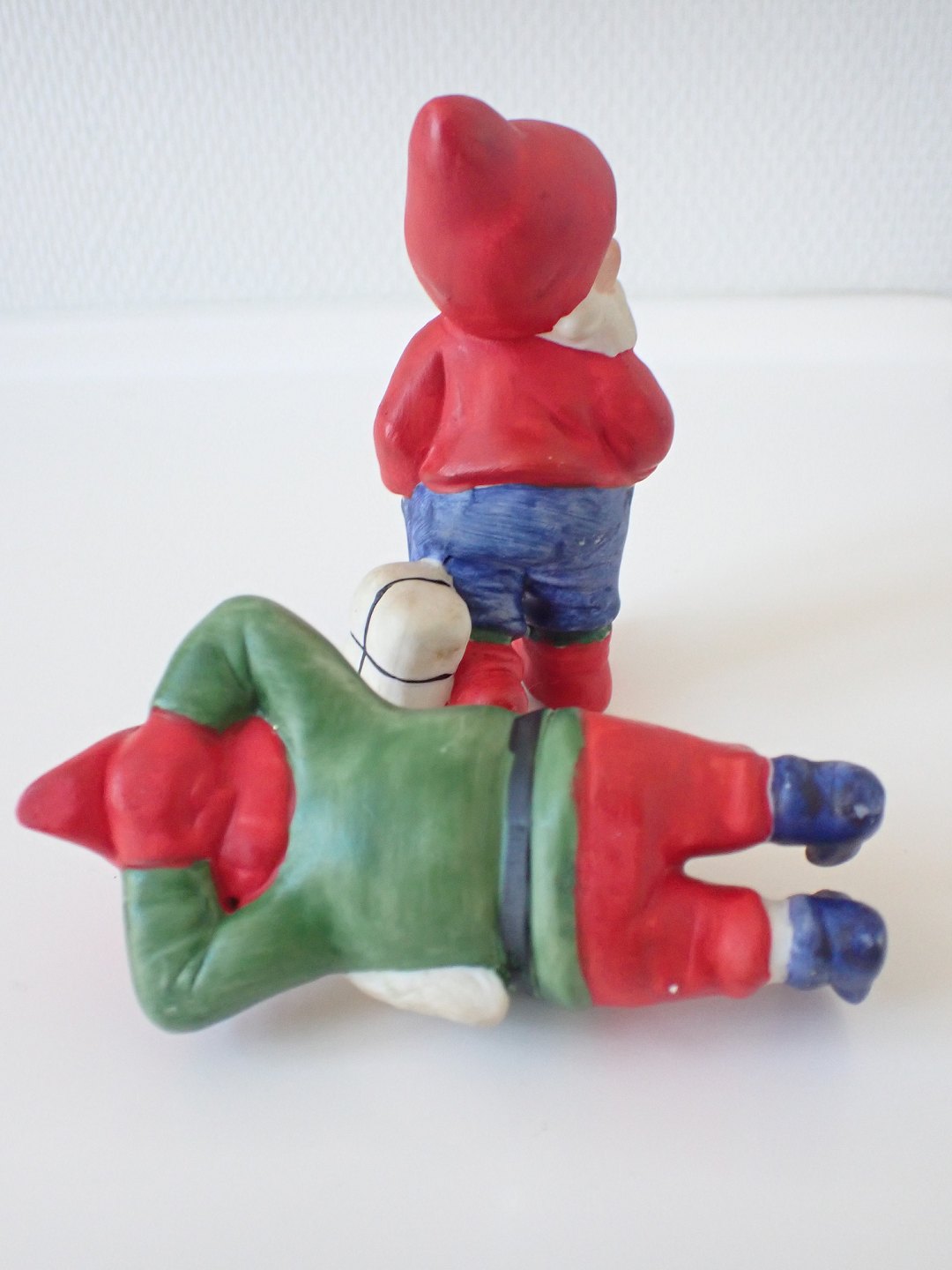 2 store håndmalede biscuitnisser, formentlig tyske. En ligger og sover og en står med en pakke. Fra 1970-erne. Højde: 10 cm. I fin stand. Sælges individuelt for 275 kr. pr. stk. Händler