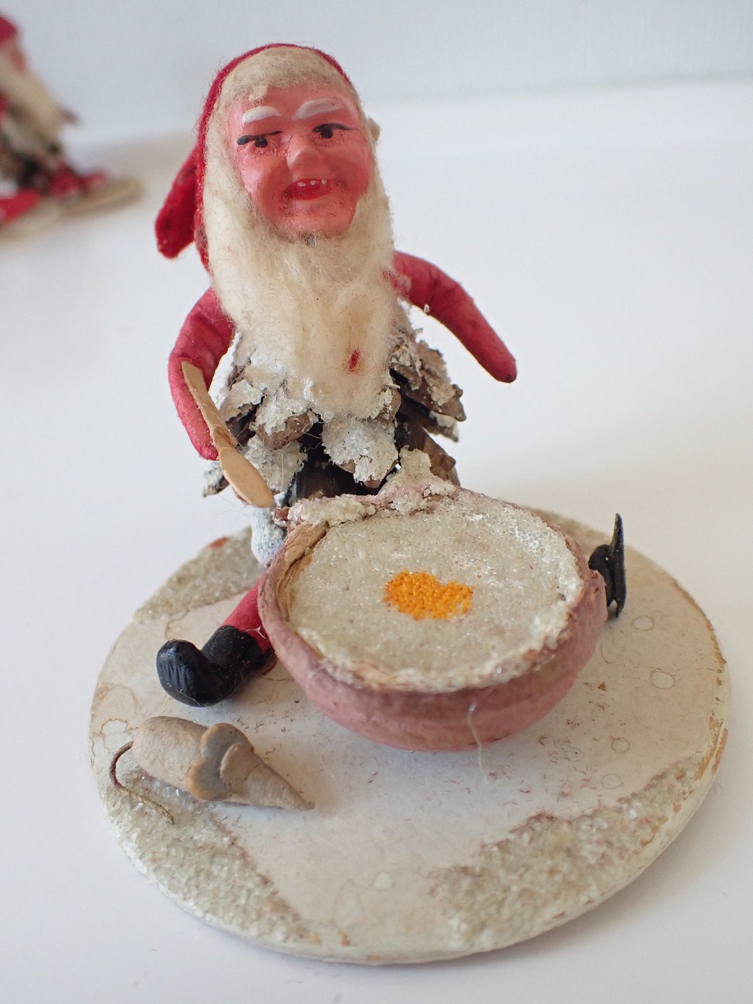 5 koglenisser med henholdsvis grangren, risengrød, piberensernisse, gavesæk, banjo og harmonika. Håndmalede, danske ca. 1930. Højde: 6,5 - 7,5 cm. I pæn tidstypisk stand. Händler