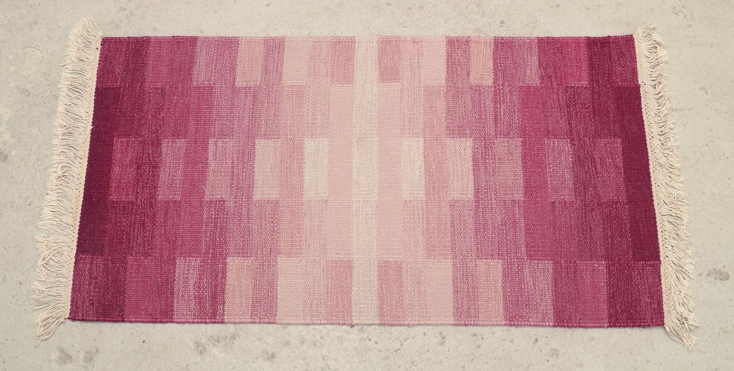 Svensk tekstildesigner.Håndvævet ”Terass” tæppe i uld. Rölakan teknik.