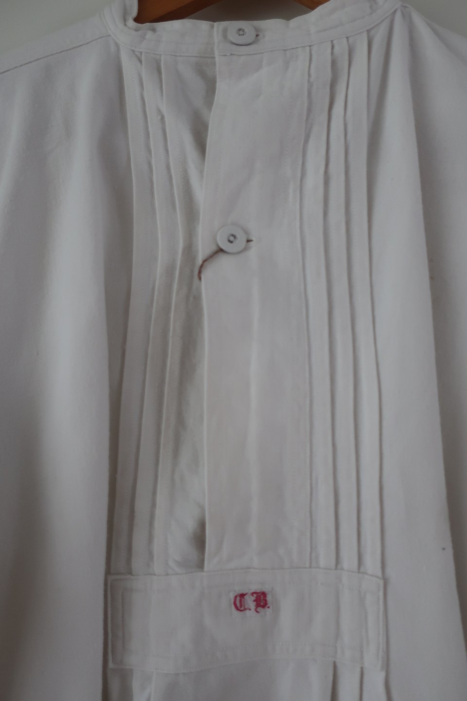 Ein antikes Frauenhemd mit hand gestickten Knopflöcher, handgestickten Initialien u.a.