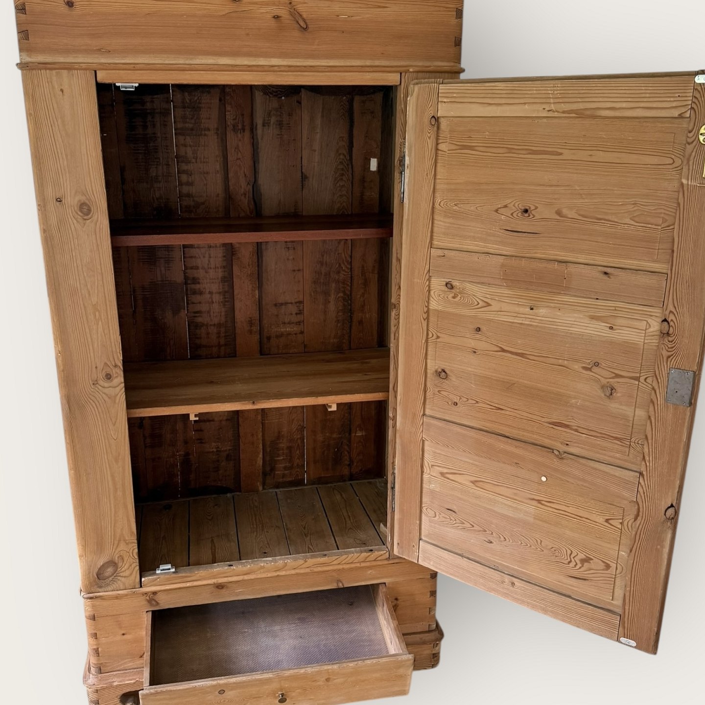 Herrengarderobe in Kiefer, guter gebrauchter Zustand mit kleinen Reparaturen an den Beinen, Maße HxBxT 180x102x50cm