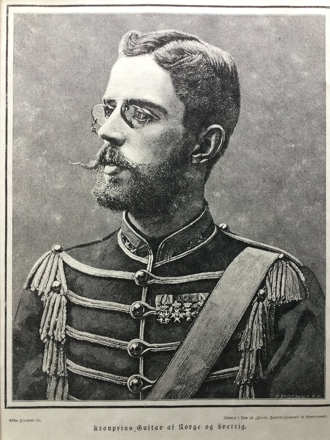 Xylografi af Richard Brend'amour - Portræt af HKH Kronprins Gustav af Norge og Sverige.