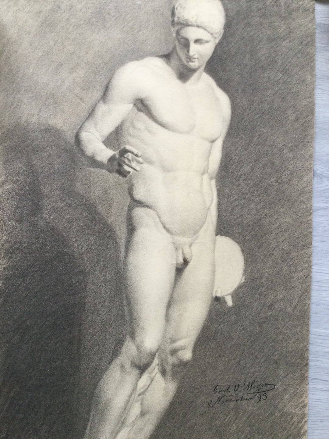 Akademitegning af Carl V. Meyer 1893 - Nøgen mand - Marmorskulptur - Diskoskasteren.