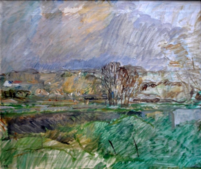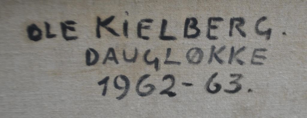 Kielberg, Ole (1911 - 1985) Dänemark: Mailandschaft - Daugløkke, 1962-63. Öl auf Leinwand. Signiert: OK. Auf der Rückseite signiert: Ole Kielberg Daugløkke 1962-3. H: 46 cm. B: 55 cm.Gerahmt: H: 52,5 cm. B: 62 cm.