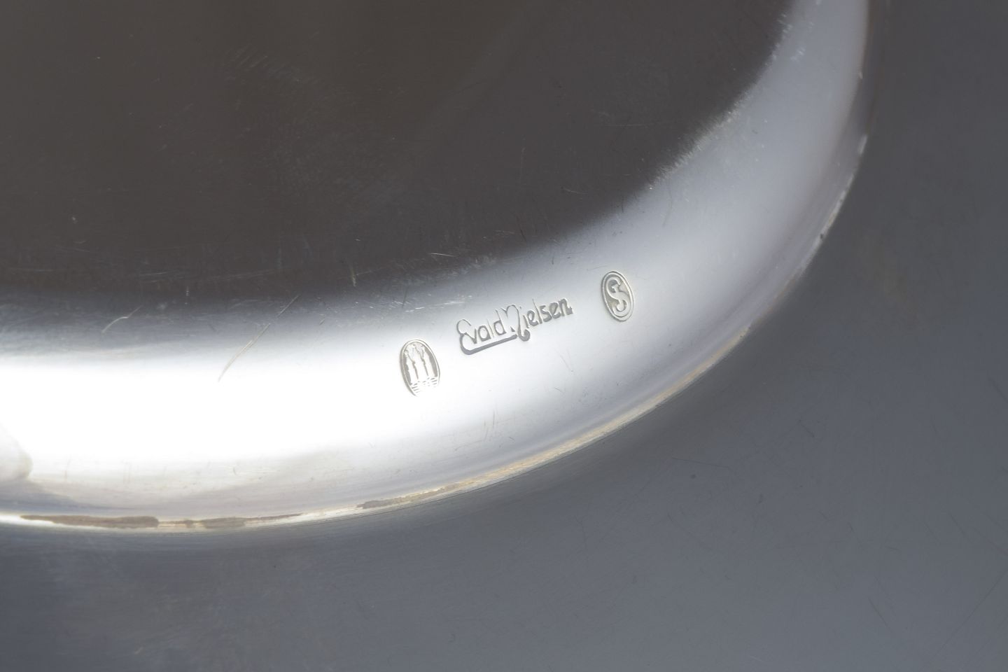 Rund dækketallerken af tretårnet sølv (830s) med enkel og elegant formgivning.