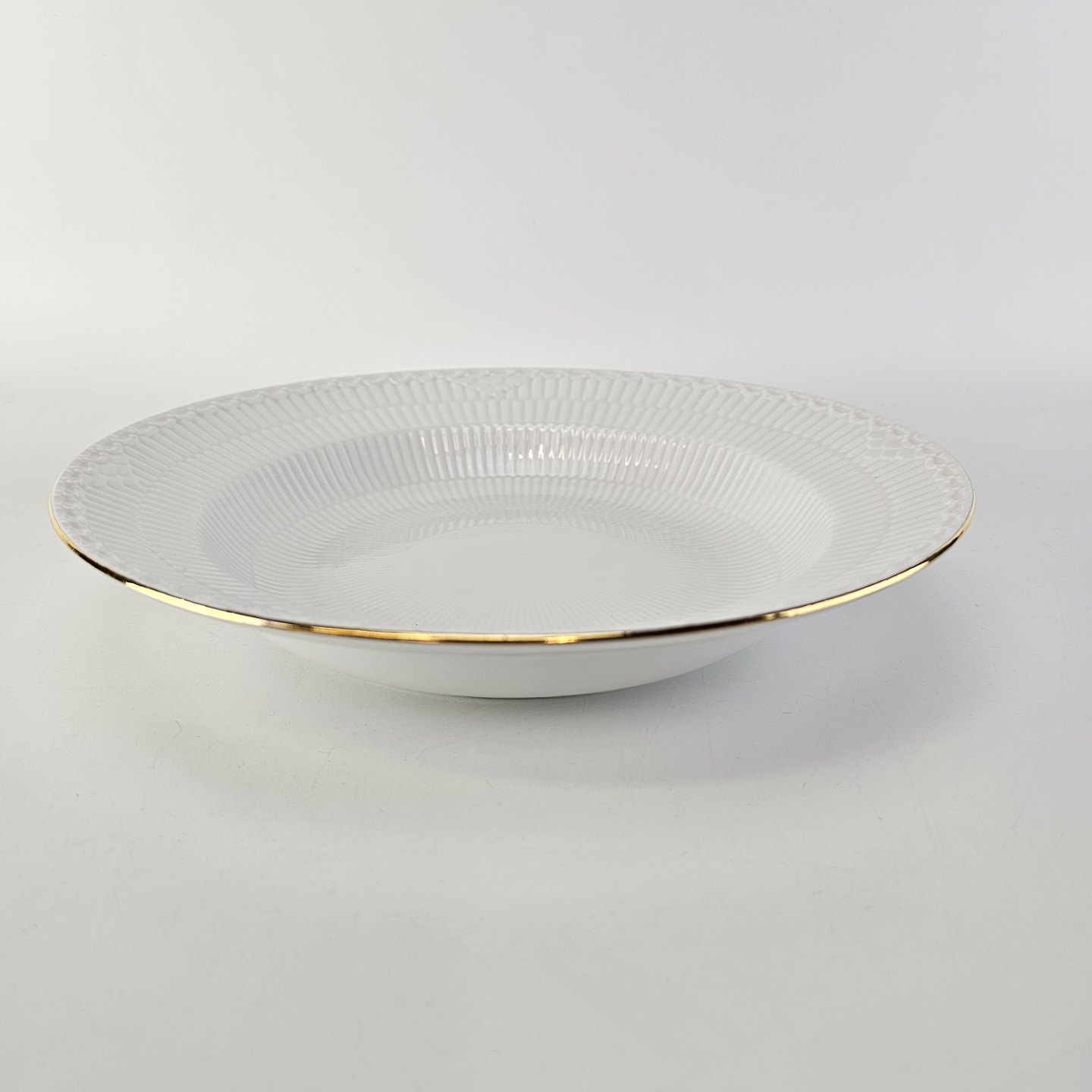 Stellet er i hvidt porcelæn med halvblonde dekoration og guldkant
