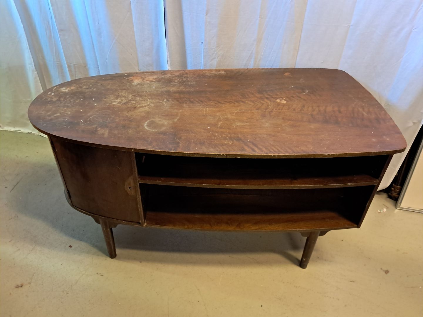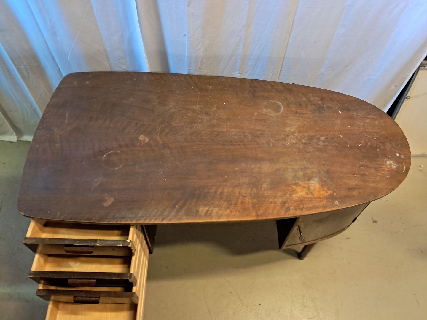 Skrivebord i fineret nødetræ, fra 1960erne.