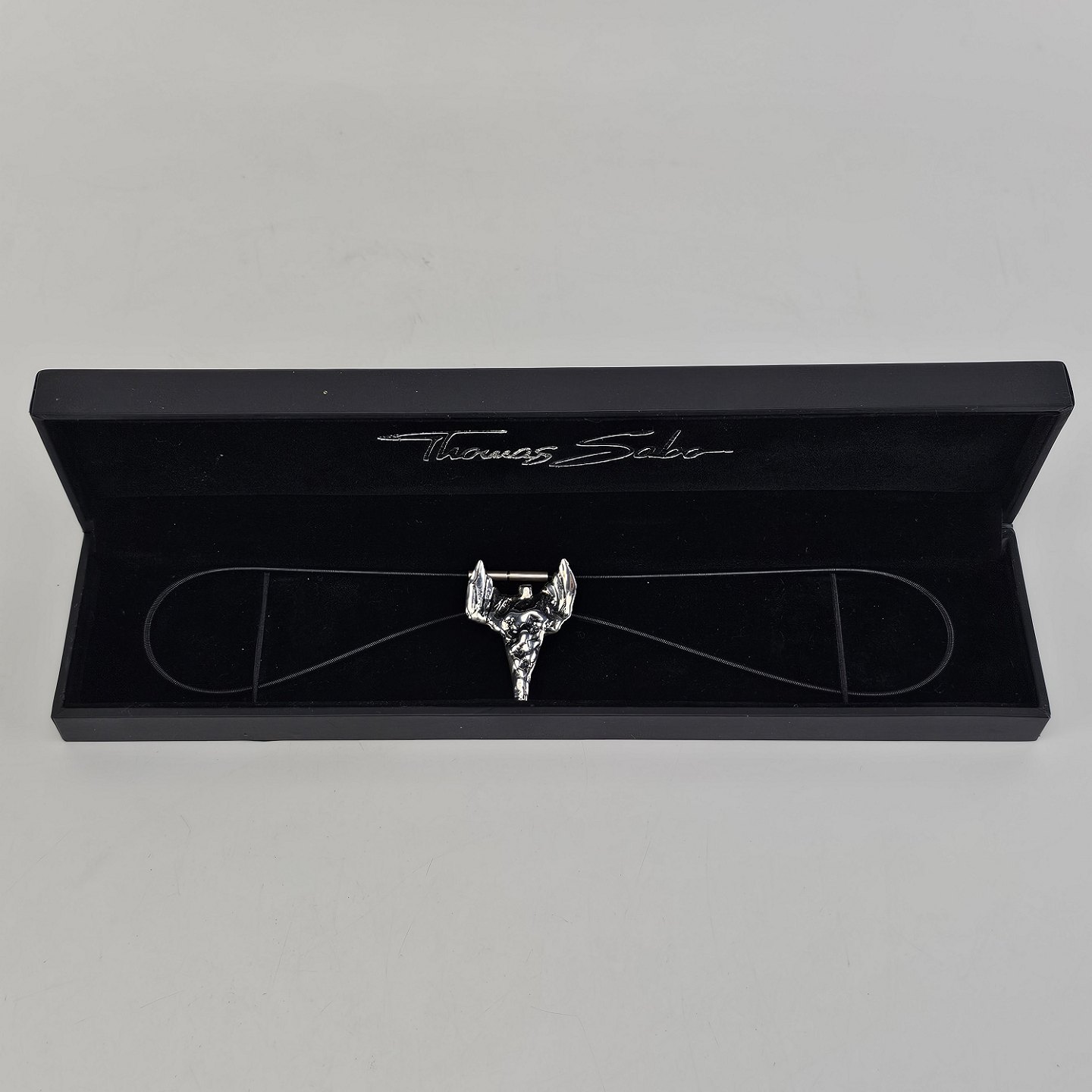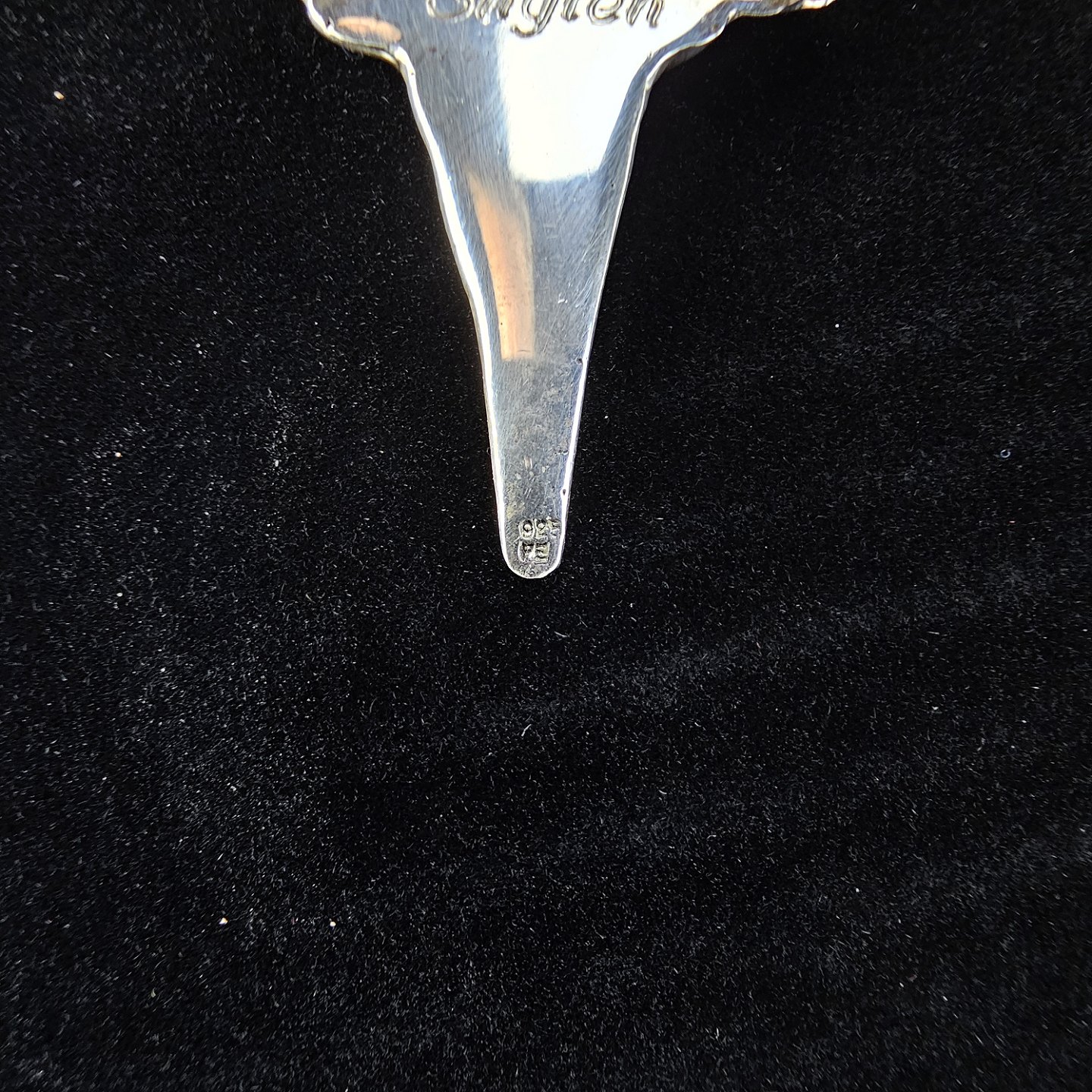 Halssmykke i sterling sølv med motiv af en abstrakt engel og læderrem, smykket er kaldet Nibe Englen