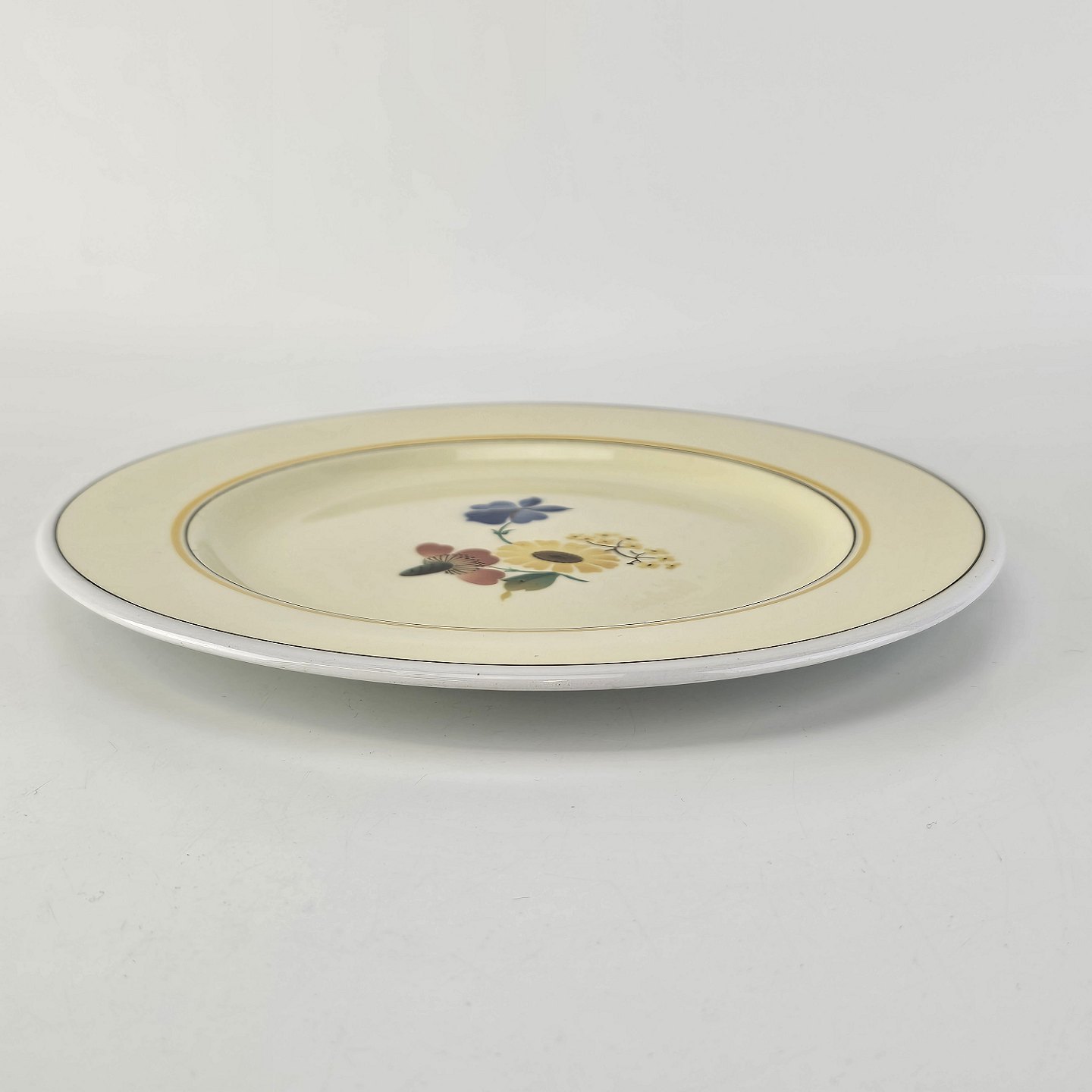 Stel i glat gul fajance med dekoration af farverige og forskelligartede blomster