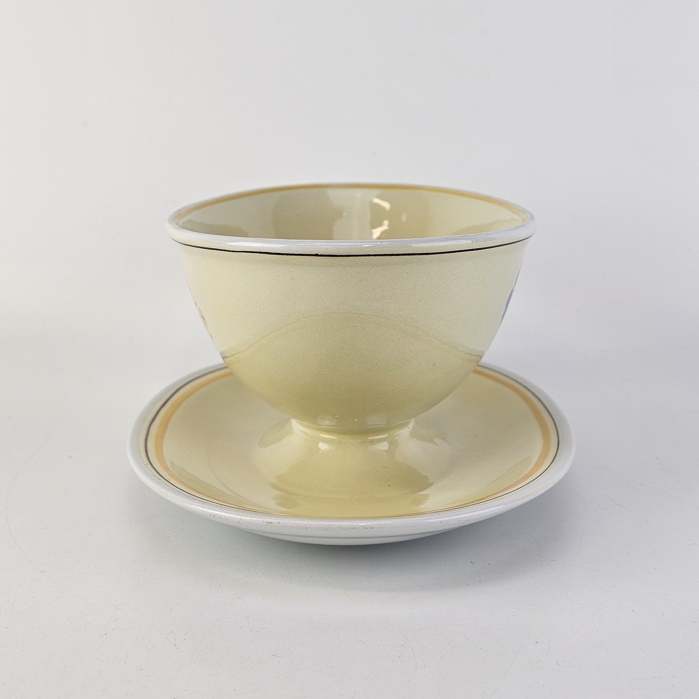 Stel i glat gul fajance med dekoration af farverige og forskelligartede blomster