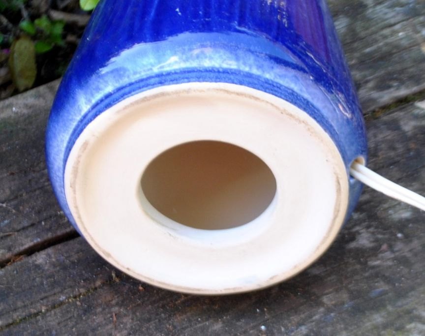 Keramik-Tischlampe mit blauer Glasur, 20. Jahrhundert. Dänemark. Mit Rillen. Ungestempelt. Höhe ohne Elektroinstallation: 37 cm. Mit Elektroinstallation: 58 cm. In der Lampe ist ein Loch für das Kabel gebohrt.Ausgezeichneter Zustand.