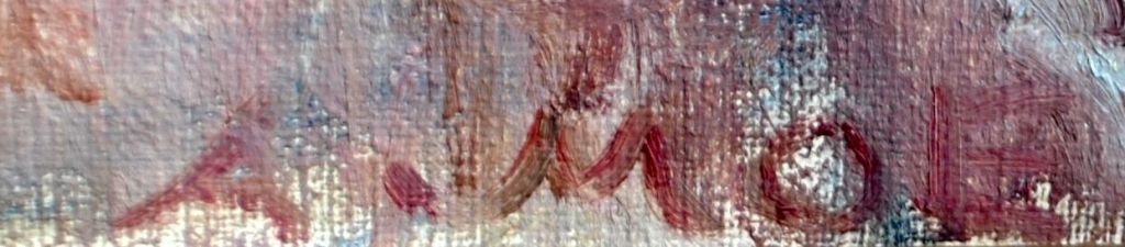 Moe, Andreas Carl (1877 - 1952) Dänemark: Vase mit Blumen auf einem Tisch. Öl auf Leinwand. Signiert. 63 x 51 cm.Gerahmt: 71 x 64 cm.