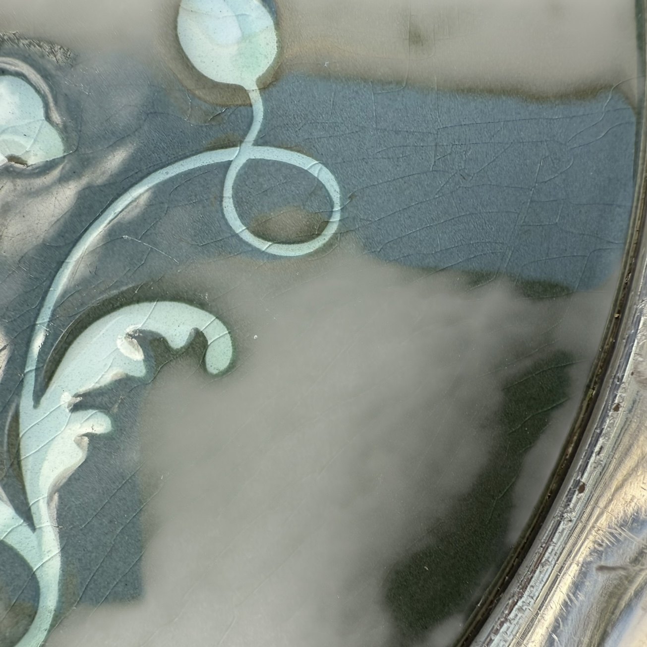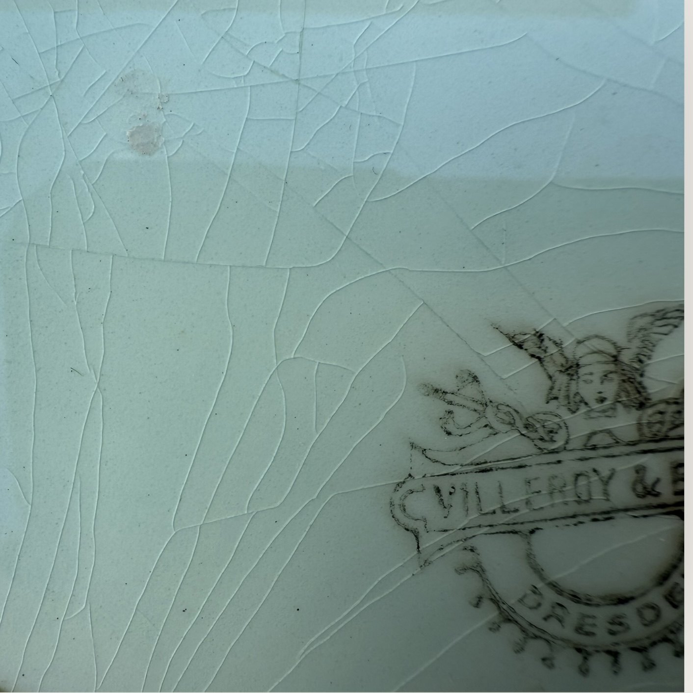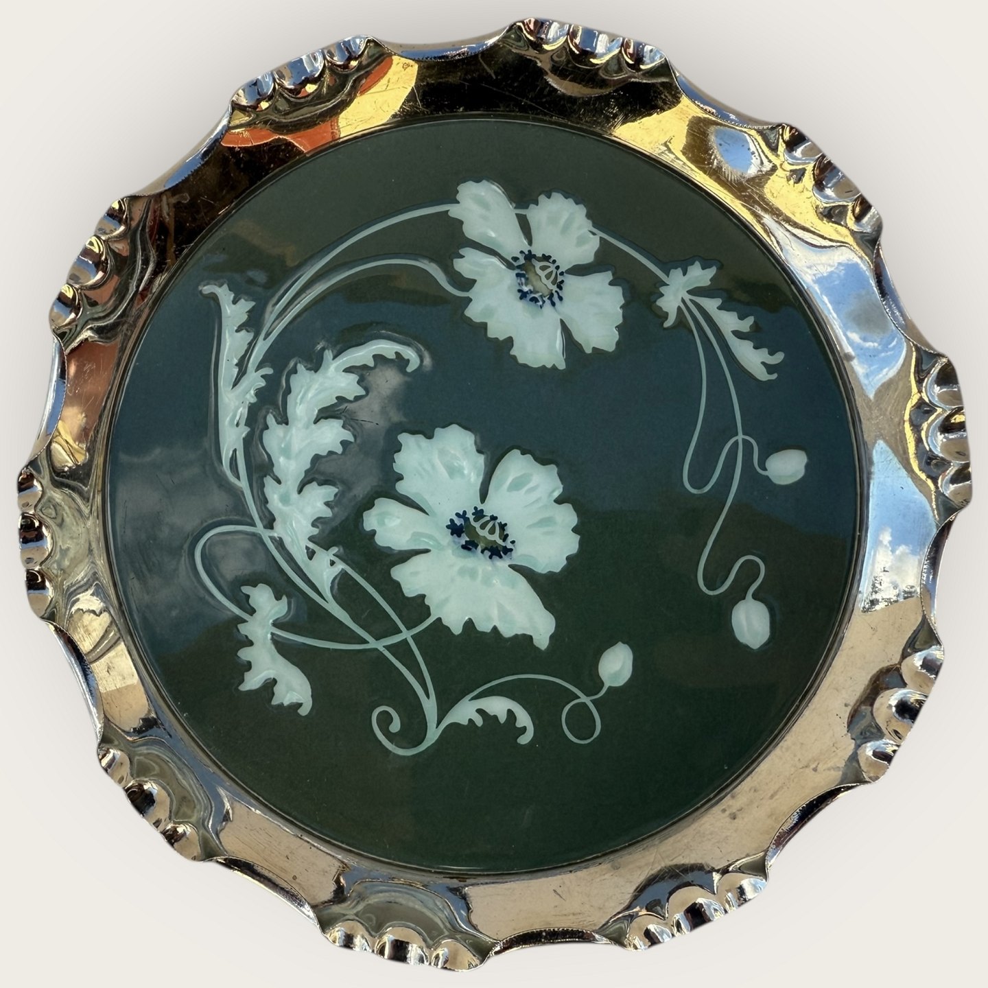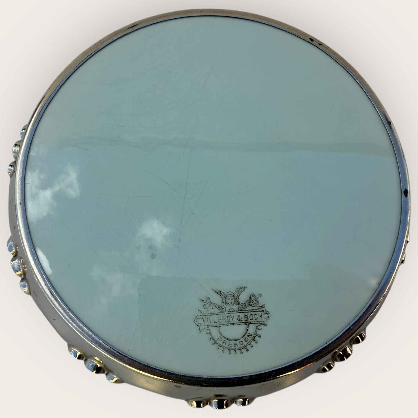 Villeroy & Boch, Flaschentablett / Schale, Durchmesser 17cm, Jugendstil / Art Nouveau aus Porzellan und mit versilbertem Rand, einige kleine Risse unter der Glasur (siehe Foto), ansonsten in gutem ZustandLager: 1
