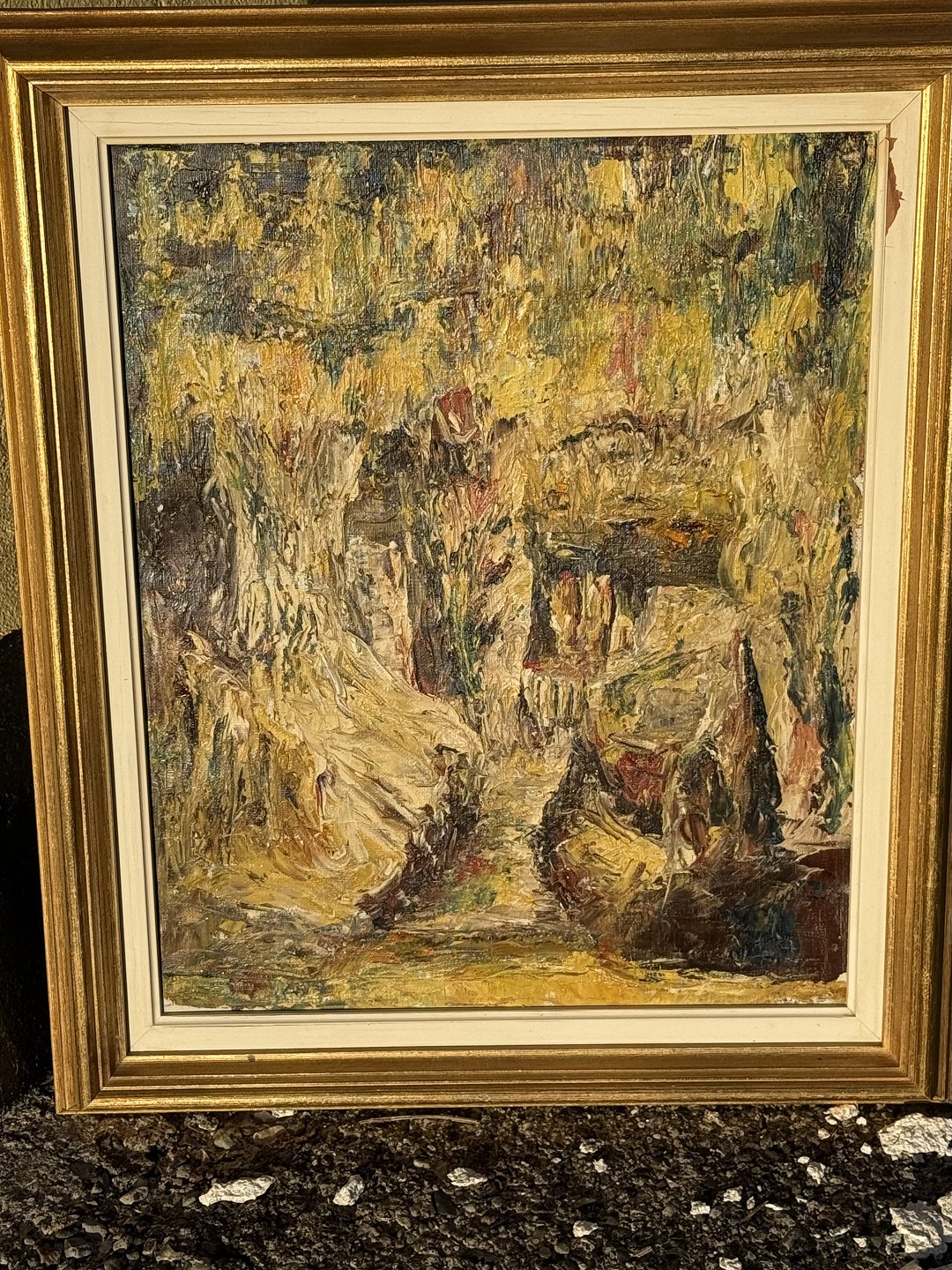 Unsigniertes modernes abstraktes Gemälde mit gutem Farbverständnis, Ölgemälde auf Leinwand, Maße mit Rahmen 51x43cmLager: 1