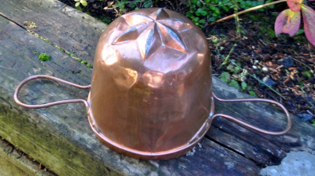 Pateten- oder Fleisch form, Kupfer, 19. Jahrhundert. Dänemark. Mit zwei Henkeln und sternförmiger Verzierung. Durchmesser: 21,5 cm. Durchmesser inkl. Henkel: 46 cm. H: 19 cm. Keine sichtbaren Stempel.Bestellnummer: 28309