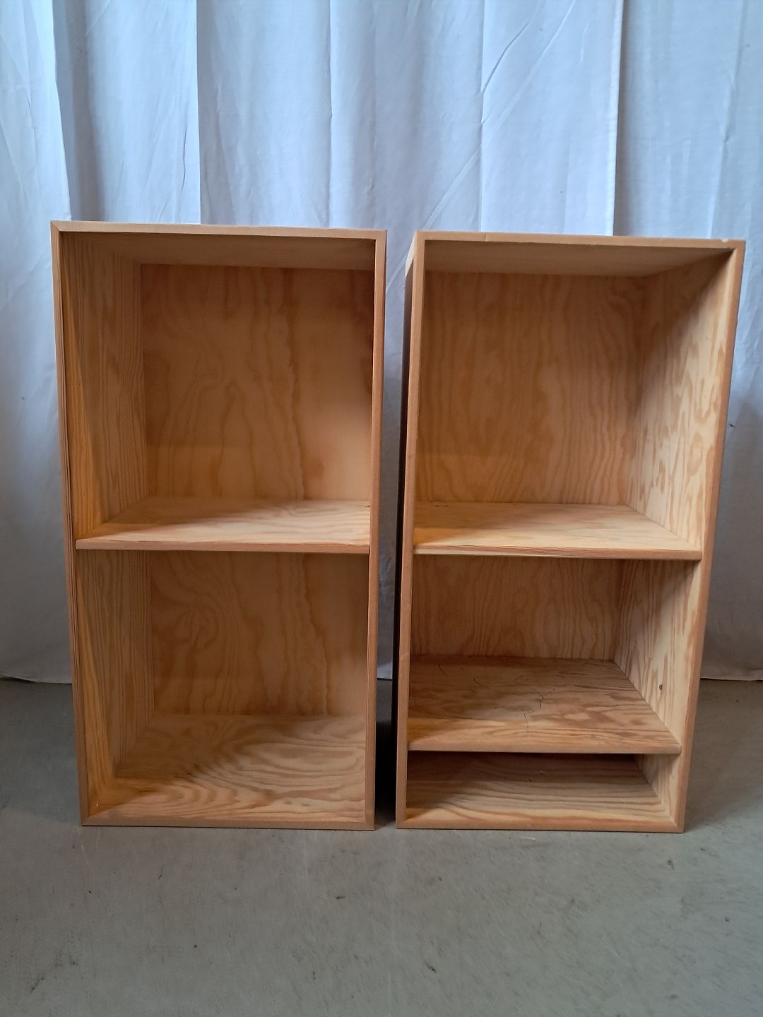 2 Reolkasser i krydsfiner, fra 2000erne.