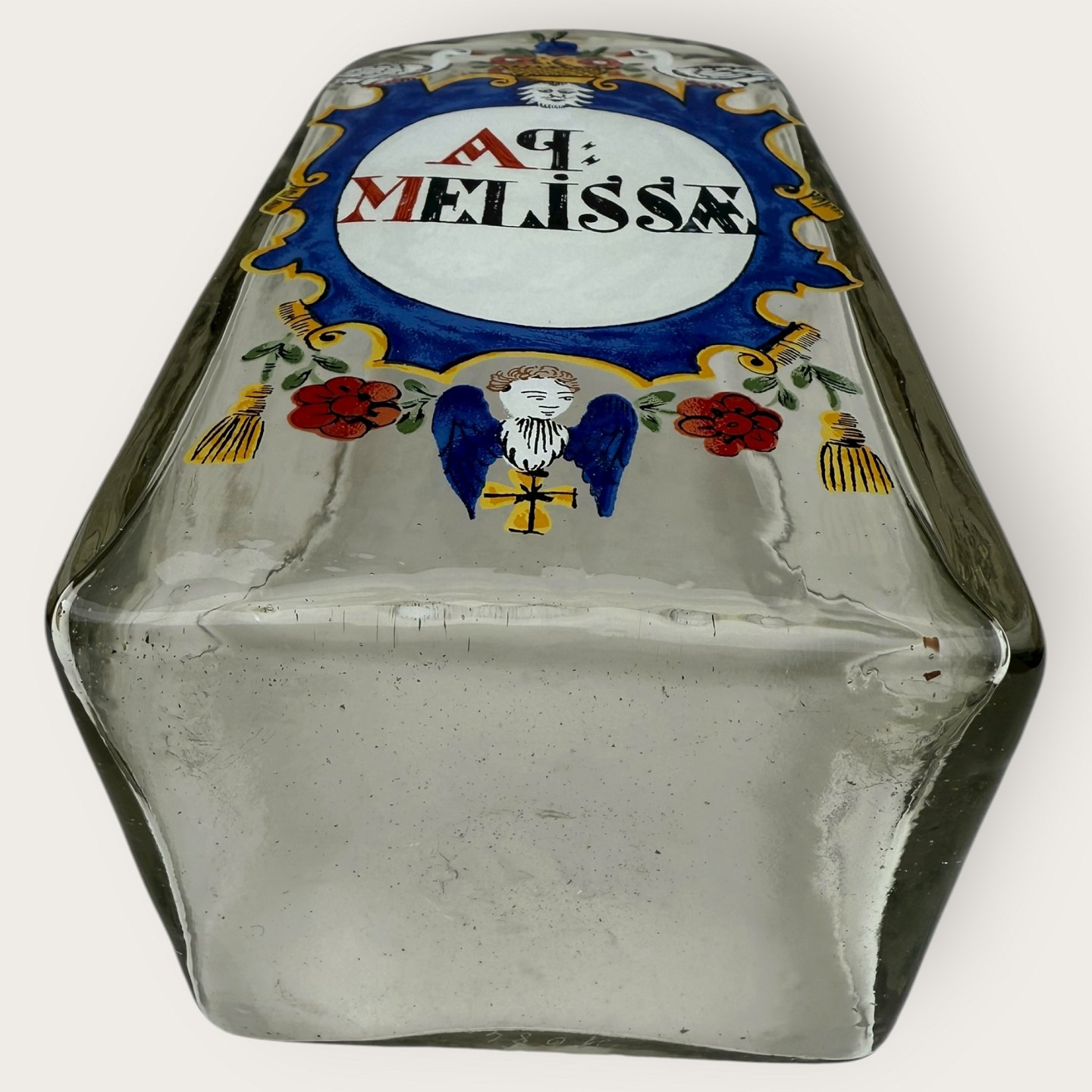 Holmegaard Apothekerflasche von 1986, AP Melissæ, Maße: 23x10x9cm, die Flaschen sind mundgeblasene Kopien von originalen alten Apothekerflaschen, signiert Hg86.Lager: 1