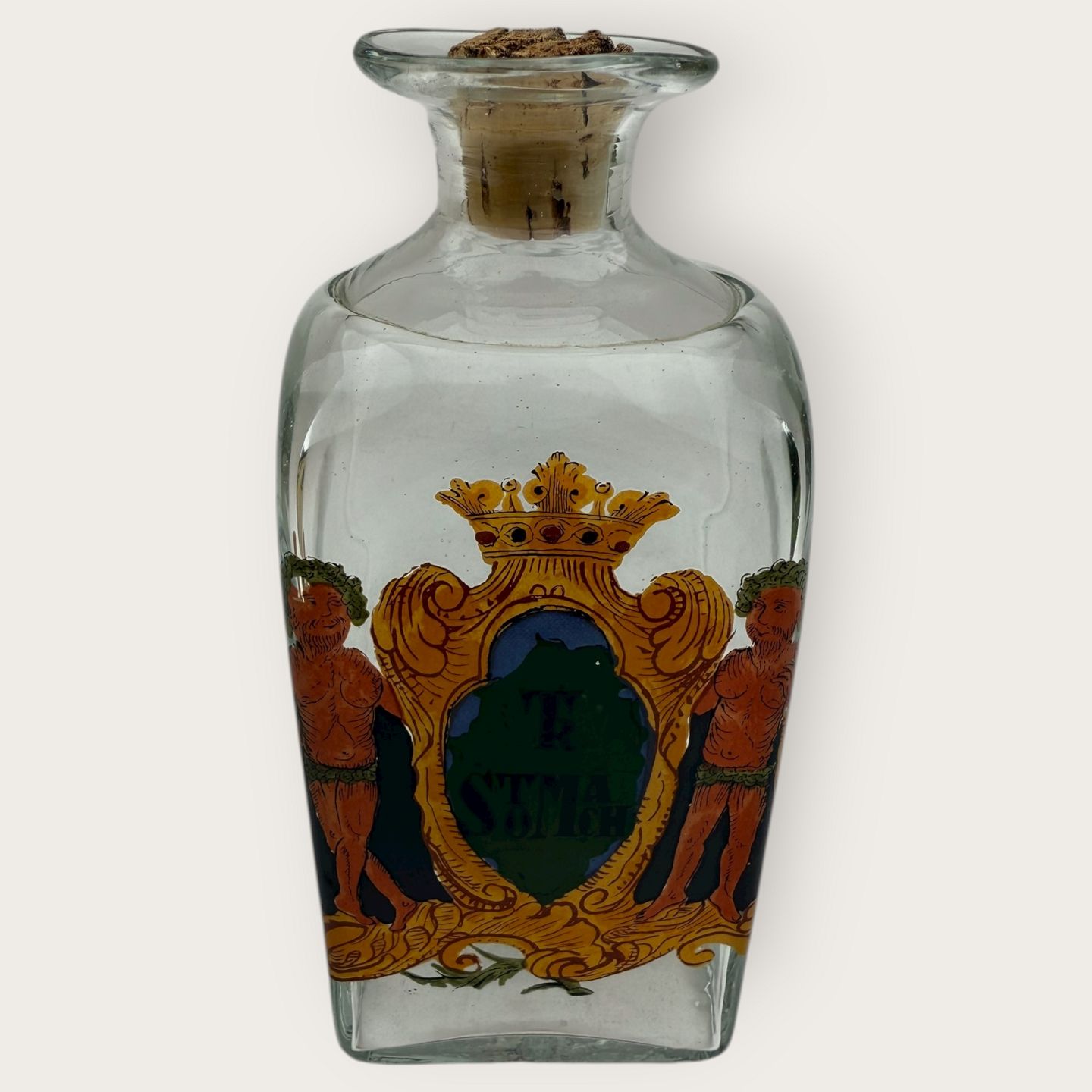 Holmegaard Apothekerflasche von 1980, Tinctura Stomach, Maße: 18x8x8cm, die Flaschen sind mundgeblasene Kopien von originalen alten Apothekerflaschen, signiert Hg80.Lager: 1