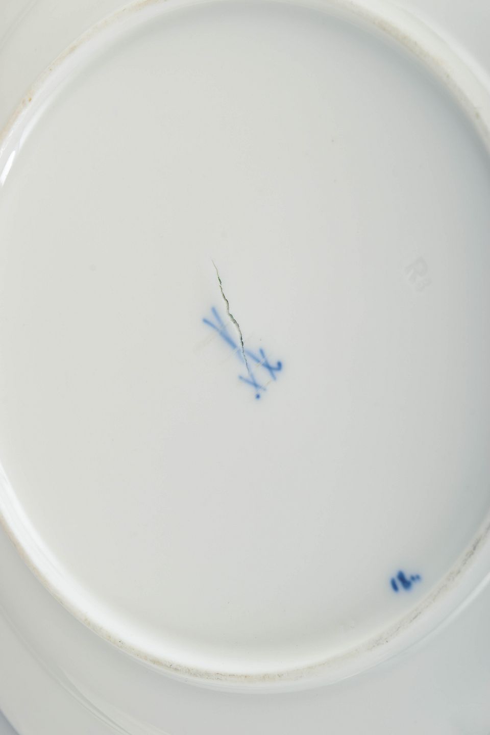 Meissen Porzellan er Europas ældste porcelænsfabrik, grundlagt i 1710 i Tyskland. Den ikoniske “Zwiebelmuster” (blå løg) blev introduceret i 1739 og har siden været blandt de mest kendte porcelænsdekorationer i verden. Mønstret er inspireret af østasiatiske porcelæner og fremstilles stadig i dag. De to korslagte sværd på bagsiden er Meissens kendemærke og blandt verdens ældste varemærker.
