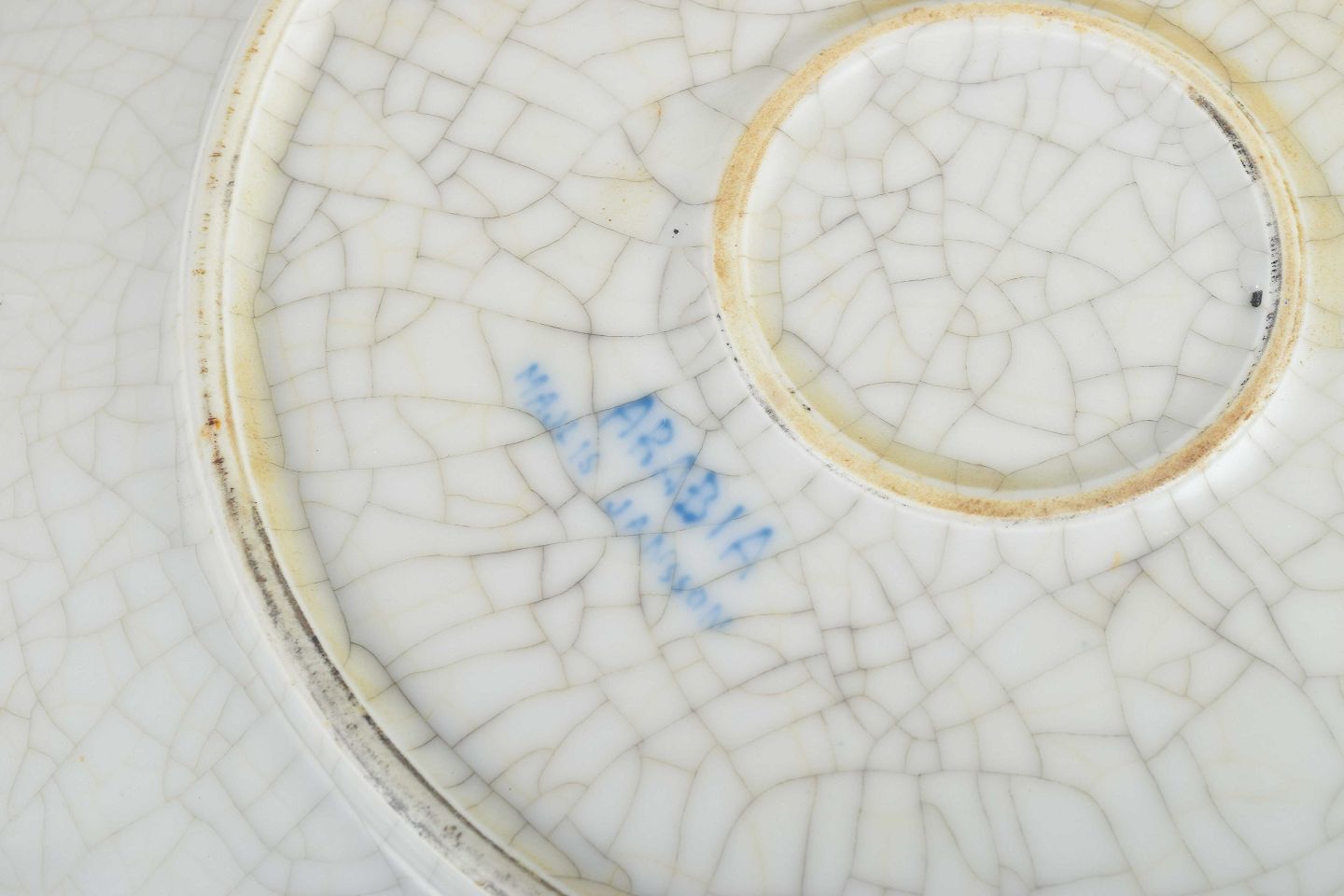 Arabia, grundlagt i 1873 i Helsinki, er en af Nordens mest anerkendte keramikproducenter. Deres “Unika”-produktioner bestod af unikke hånddekorerede værker udført af studiokeramikere og kunsthåndværkere. Tallerkener som denne bærer præg af eksperimenterende formsprog og individuelle dekorationer, hvilket gør dem til eftertragtede samlerobjekter i dag.
