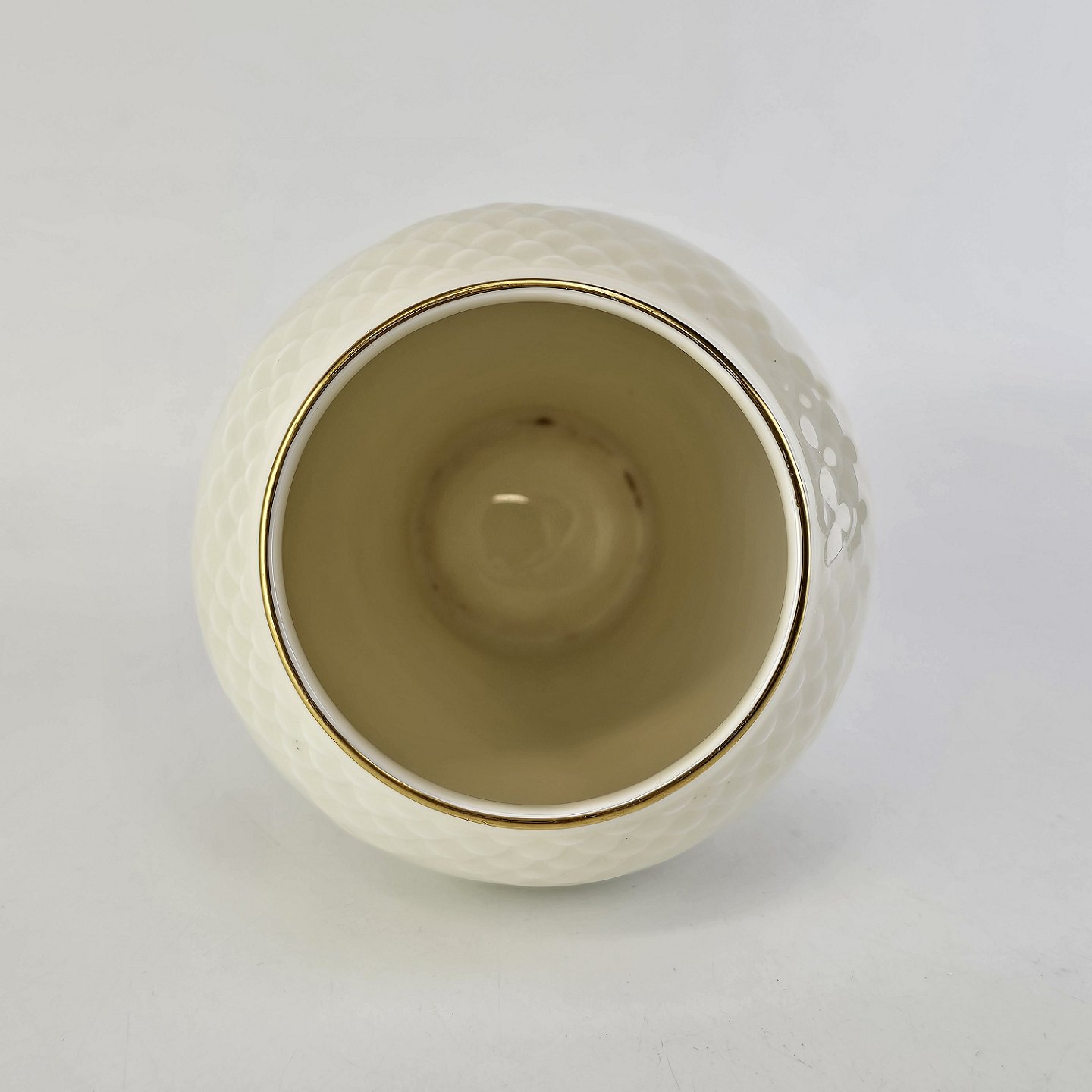 Kaktus er cremefarvet porcelæn i skælform, dekoreret med kaktusblomster og guldkant